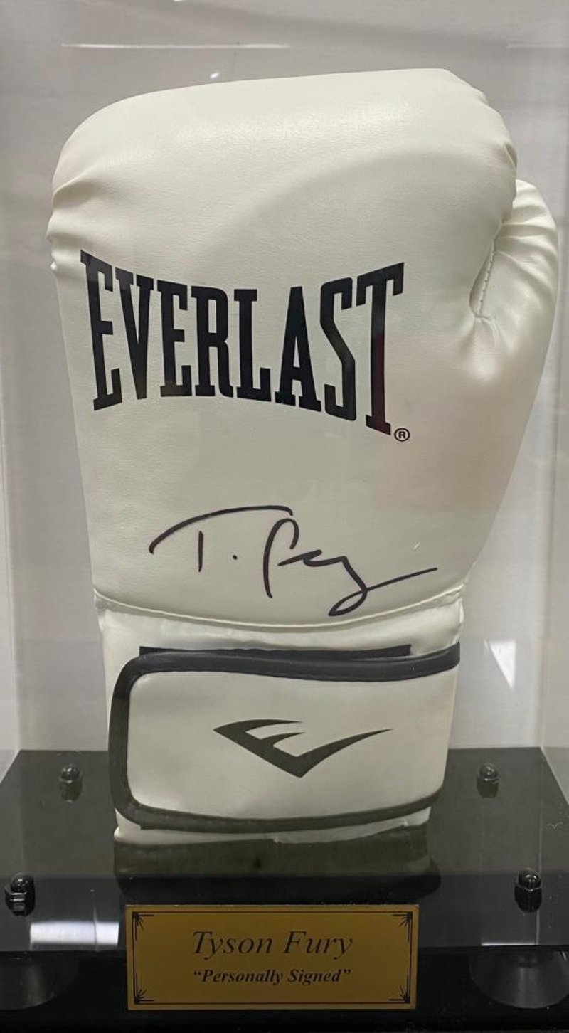 TYSON FURY PERSONALLY SIGNED BOXING GLOVE The Boxing Glove Is Presented In A Perspex Display Case. Hand Signed By Tyson Fury Using A Black Marker Accompanied By A Certificate Of AuthenticityCondition: Good - Refer To Images488263+9