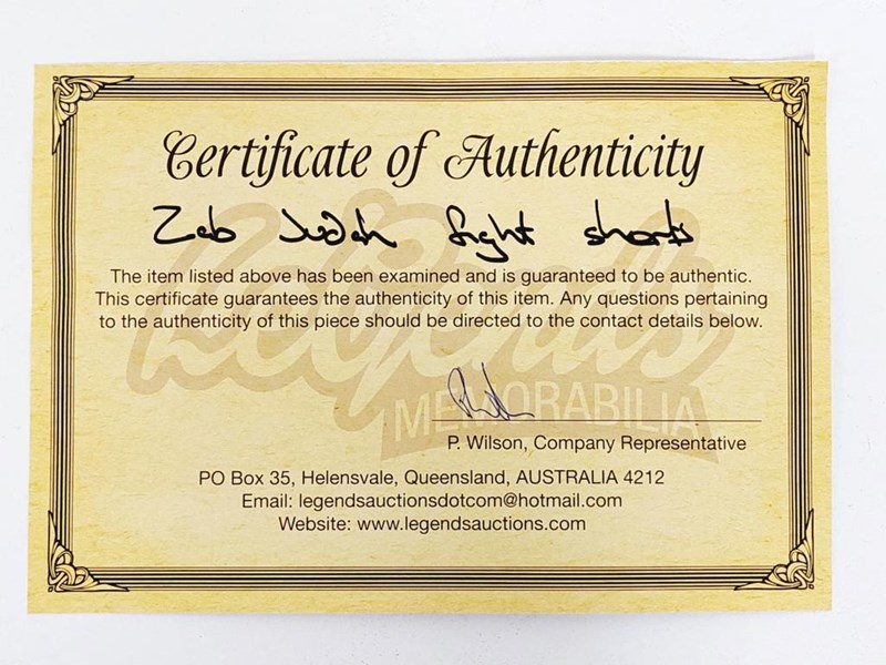 ZAB JUDAH HANDSIGNED FIGHT SHORTS Comes With Certificate Of Authenticity Size: Condition: Excellent - Refer To Images 155566+87