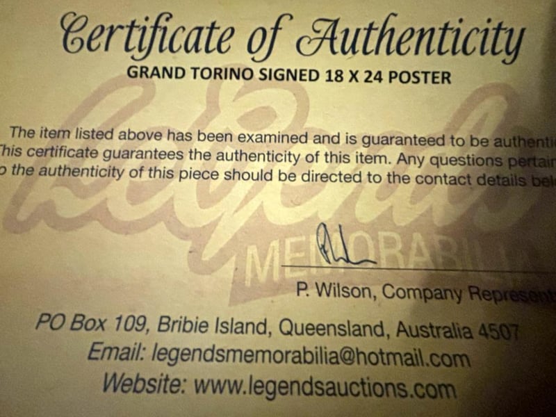 GRAND TORINO SIGNED POSTER A Grand Torino Poster Measuring 18 X 24 Inches Personally Signed By The Grand Torino Crew. The Item Is Accompanied By A Certificate Of Authenticity. Condition: Good - Refer To Images 584879+58