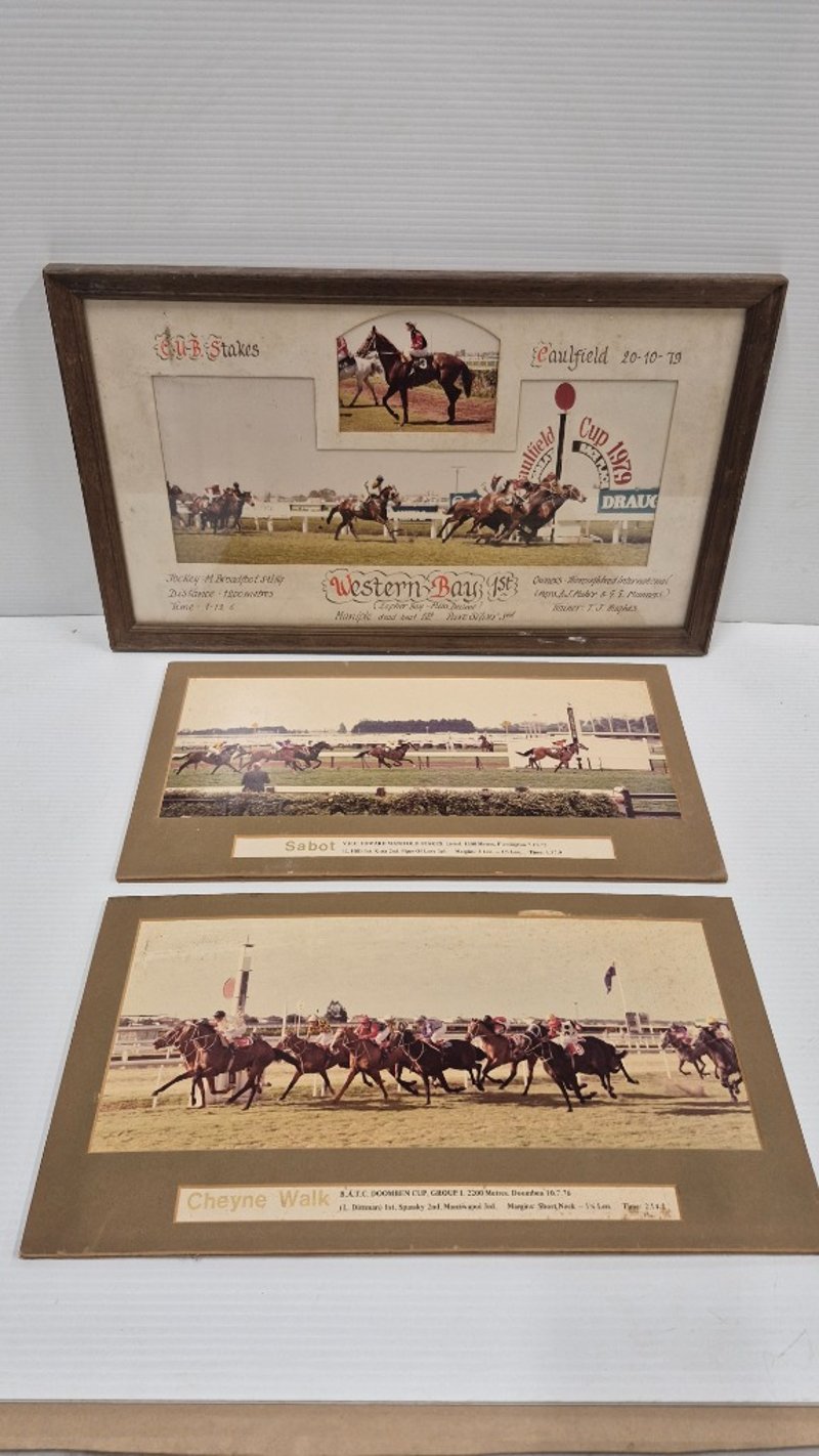 ASSORTED VINTAGE HORSE RACING WINNERS PHOTO MEMORABILIA WESTERN BAY 1ST 1979 SABOT 1ST 1972 CHEYNE WALK 1ST 1976 Condition: Fair - Refer To Images LOCATED RACK 13A 587652+3