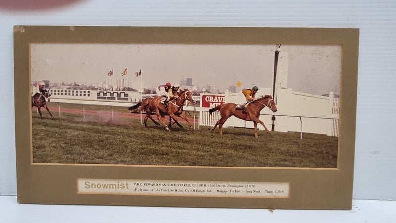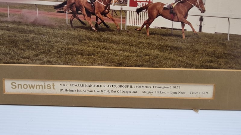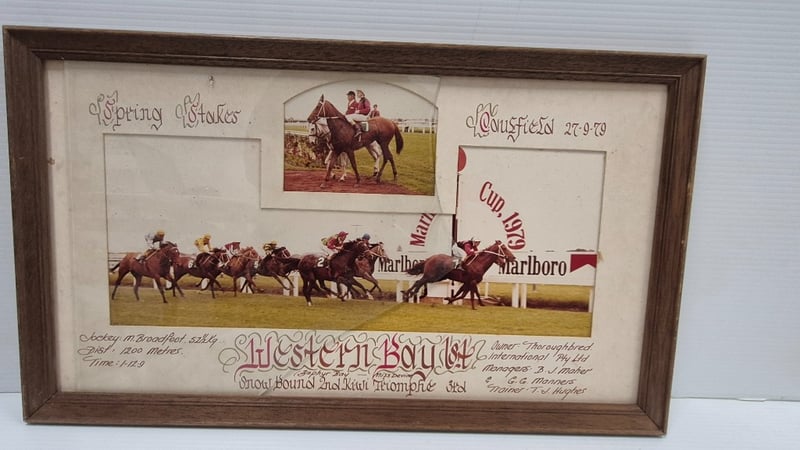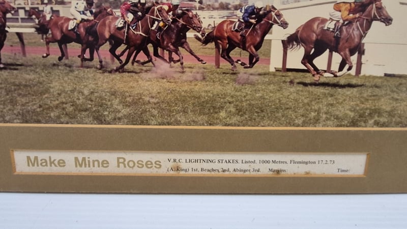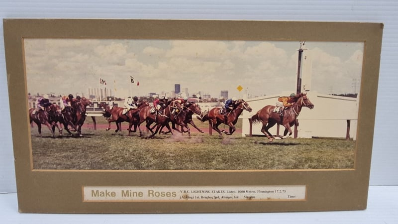 ASSORTED VINTAGE HORSE RACING WINNERS PHOTO MEMORABILIA WESTERN BAY 1ST 1979 BROKEN GLASS SNOWMIST 1ST 1976 MAKE MINE ROSES 1ST 1973 Condition: Fair - Refer To Images LOCATED RACK 13A 587652+4
