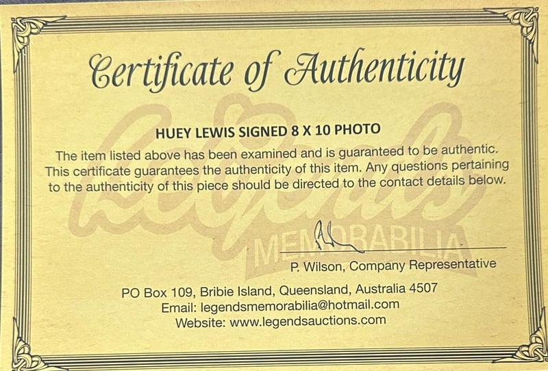 HUEY LEWIS & THE NEWS SIGNED PHOTO Huey Lewis Personally Signed 8 X 10 Photo. Huey Lewis, Is An American Actor And Former Singer-Songwriter For Huey Lewis And The News. The Item Is Accompanied By A Certificate Of Authenticity. Condition: Good - Refer To Images 584939+49