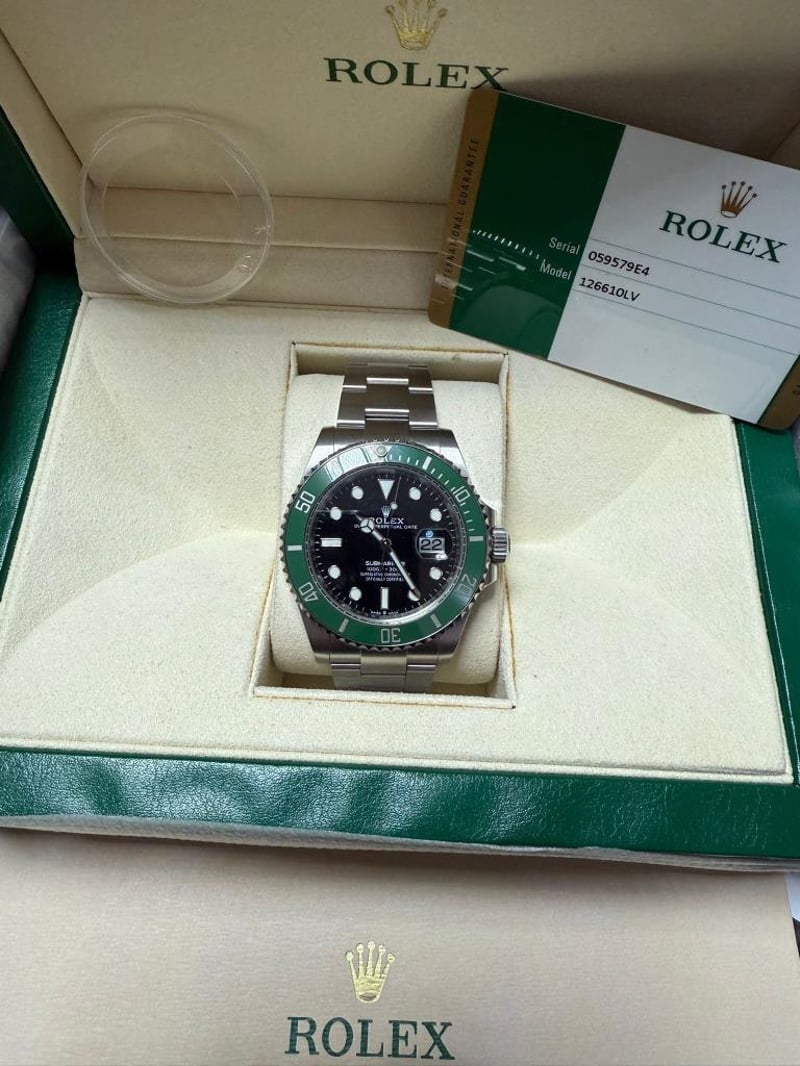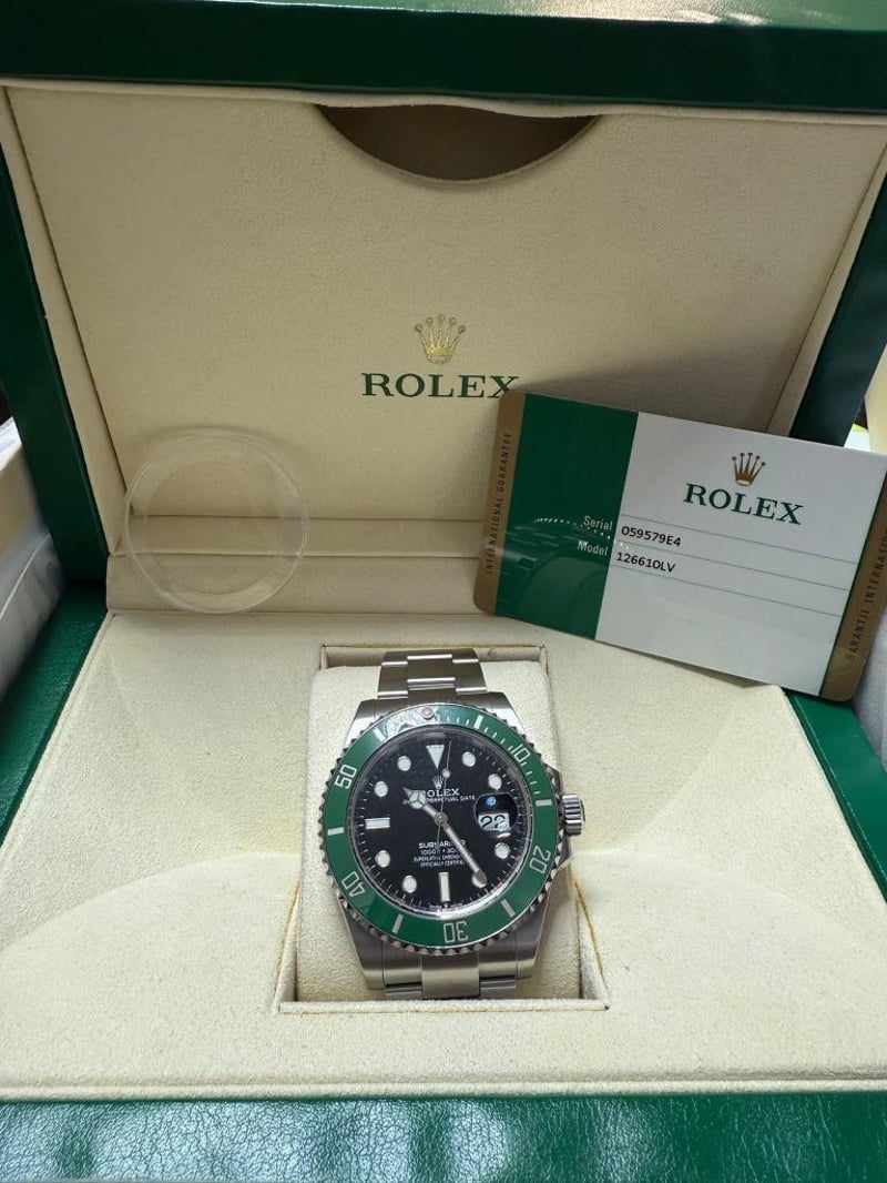 2022 ROLEX SUBMARINER DATE 41MM STARBUCKS Brand: Rolex Model : submariner date Dial : Black Year: 2022 Case Size: 41mm Box? Yes Papers Yes Condition: Good - Refer to Images