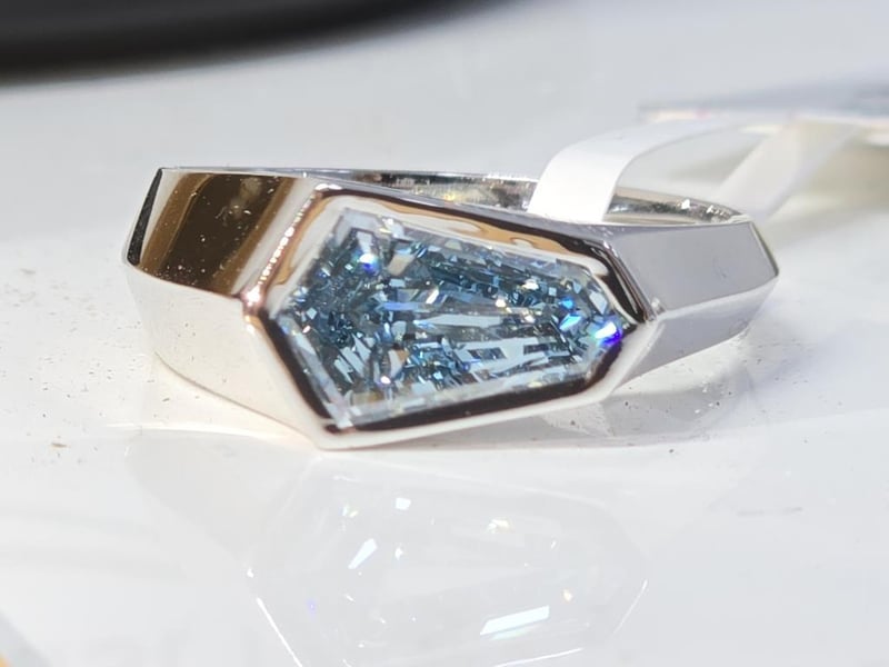 14K WHITE GOLD HEXAGON LAB GROWN RING BLUE - VS1 Fancy Colour Lab Grown Diamond Ring Markings: 14CT Condition: Good - Refer Images 0162959+18CROSSDOCK