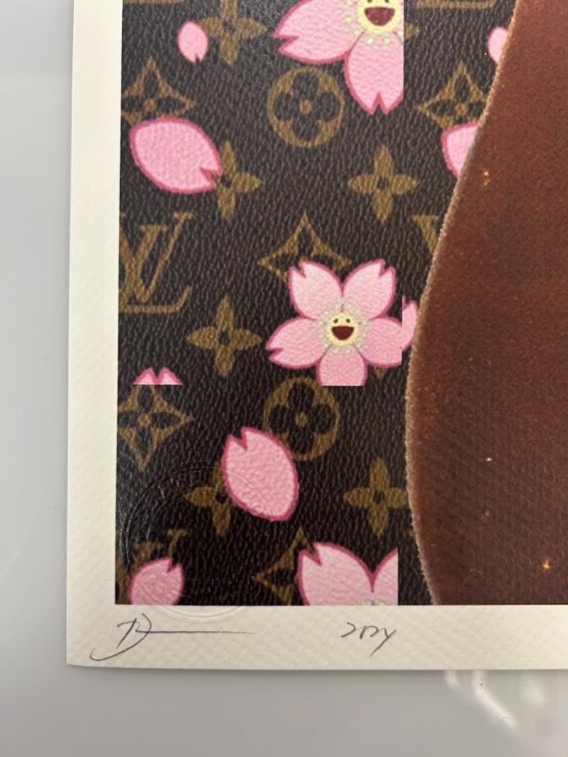 DEATH NYC SIGNED STREET ART PRINT 'YOSHITOMO NARA/LV STYLE LIMITED EDITION, SIGNED LOWER LEFT, NUMBER 87/100 LOWER RIGHT, 300 MGS FINE ART PAPER, EMBOSSED WATERMARK LOWER LEFT IN IMAGE, IMAGE MEASURES 41.9X 29.6CM, TOTAL SHEET MEASURES 45 X 32CM. CERTIFICATE OF AUTHENTICITY PROVIDED BY DEATH NYC.