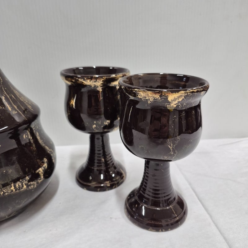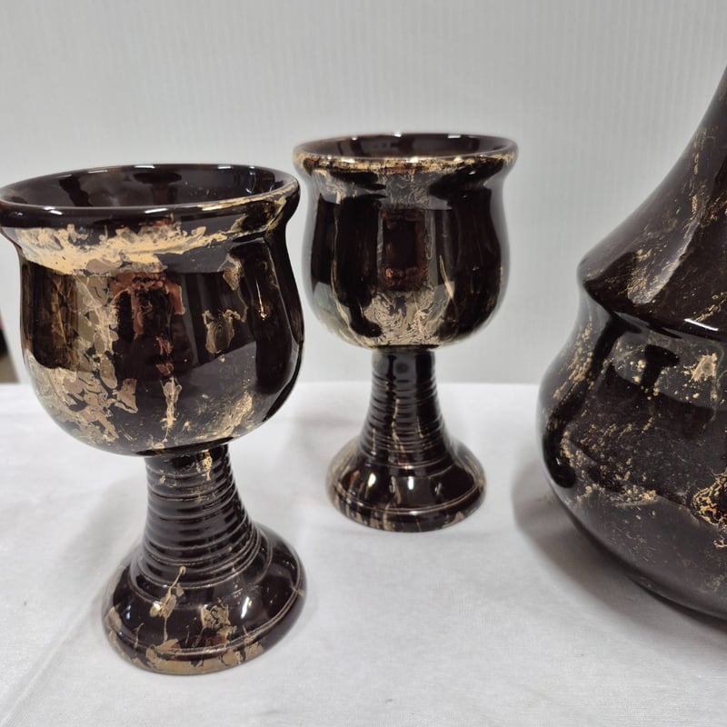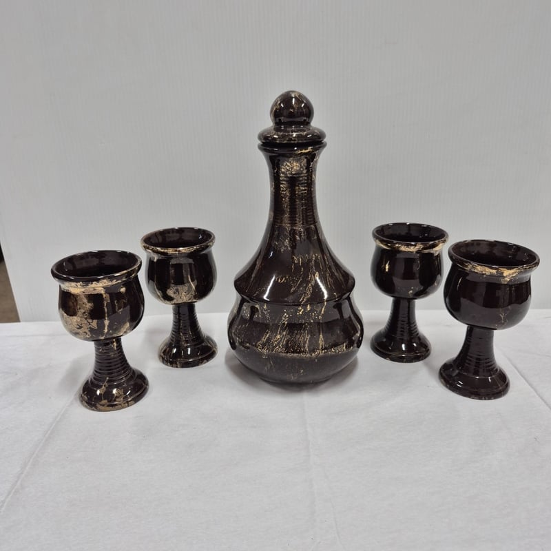 VINTAGE CERAMIC DECANTER AND 4 GOBLETS Condition: Good - Refer To Images LOCATED RACK 10B 587672+3
