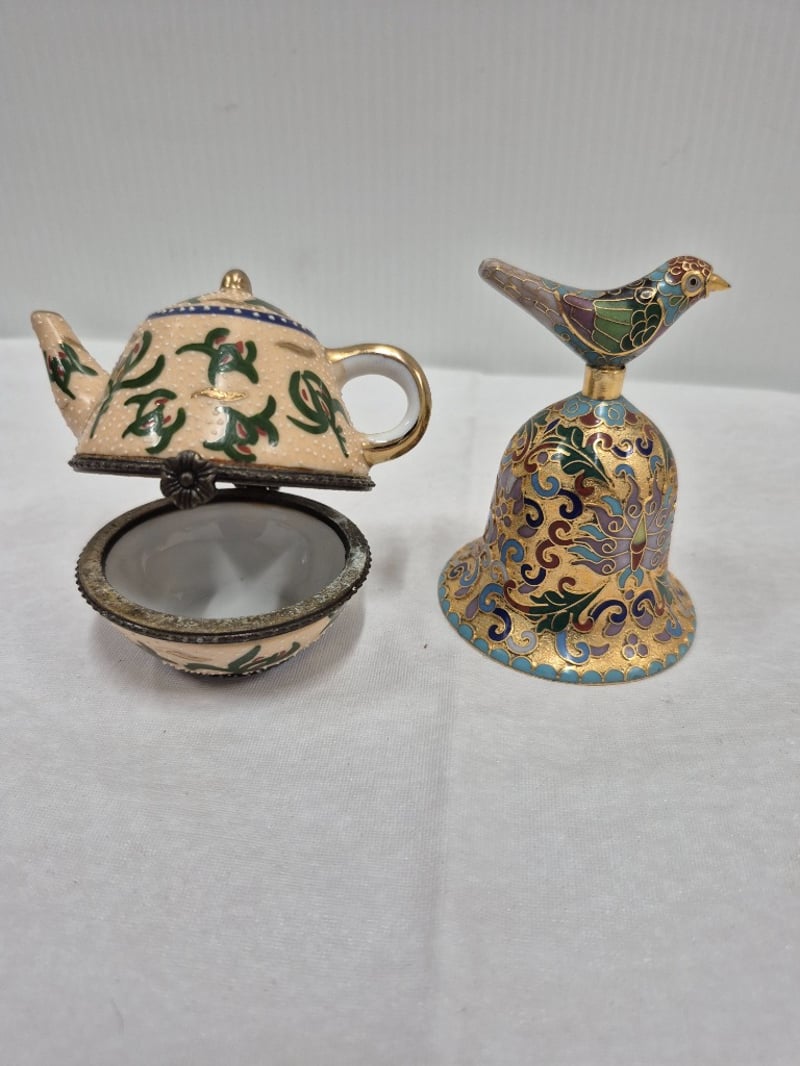 COLLECTION OF VINATGE PORCELIEN, METAL BELL, TEAPOT AND MORECondition: Good - Refer To ImagesLOCATED RACK 10C586111+9