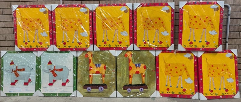 ELEVEN OIL PAINTING ON CANVAS ARTWORKS Item Size: Height: 60cm, Width: 50cm Artworks Feature Animal Style Imagery Artworks Stretched And Ready To Hang Condition: Good - Refer To Images 584844+33