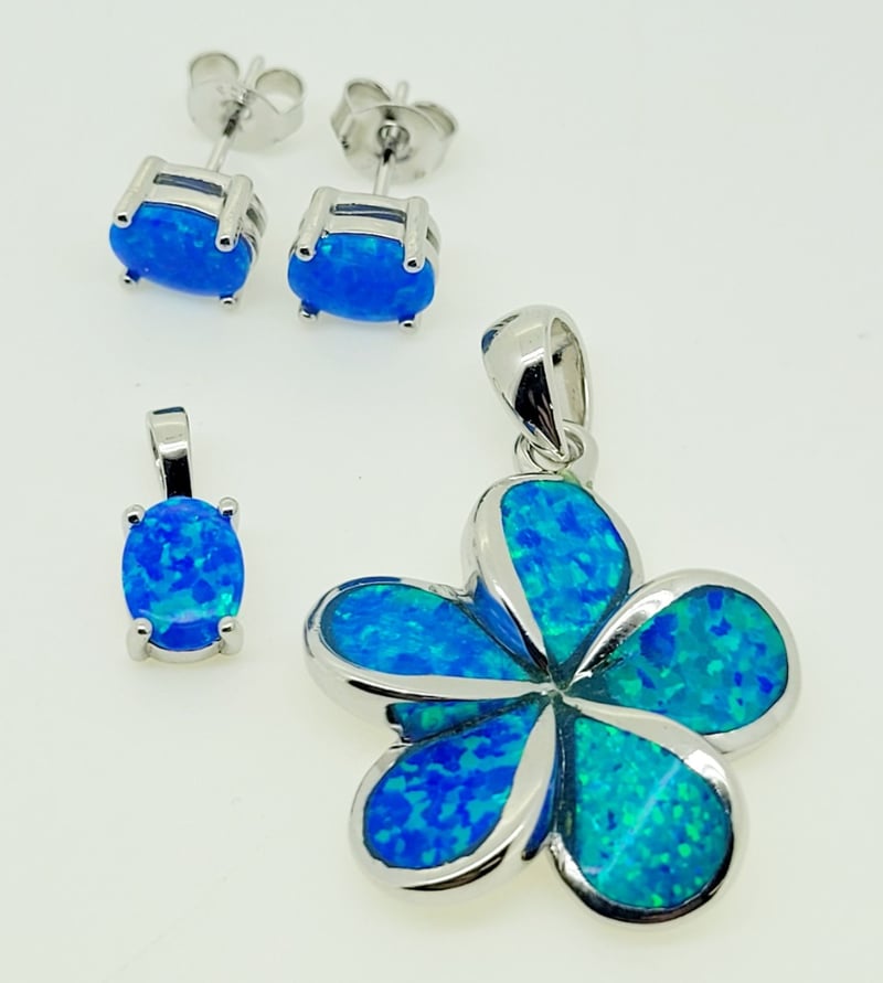 STERLING SILVER CREATED OPAL STUDD EARRINGS AND 2X PENDANTS