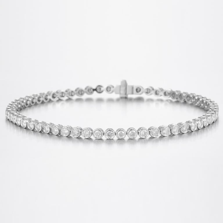 14CT WHITE GOLD DIAMOND TENNIS BRACELET. Featuring, 59 Round Brilliant Cut Diamonds (2.03Ct Tdw, G-H Colour, Vs2-Si1 Clarity), Bezel Set. Bracelet Length 18Cm. Valuations Provided by an Independent Third-Party Professional Not Directly Associated With Lloyds Auctions at AUD $42140This valuation has been conducted by an independent third-party professional. The valuation amount is an assessment by the issuing valuer and does not reflect the auction value of the item. Any inquiries regarding the valuation should be directed to the issuing valuer (refer to contact details on the certificate), as Lloyds Auctions has no affiliation or influence over the valuation, the valuer, or the stated amount. Condition: Good - Refer Images 0586156+433