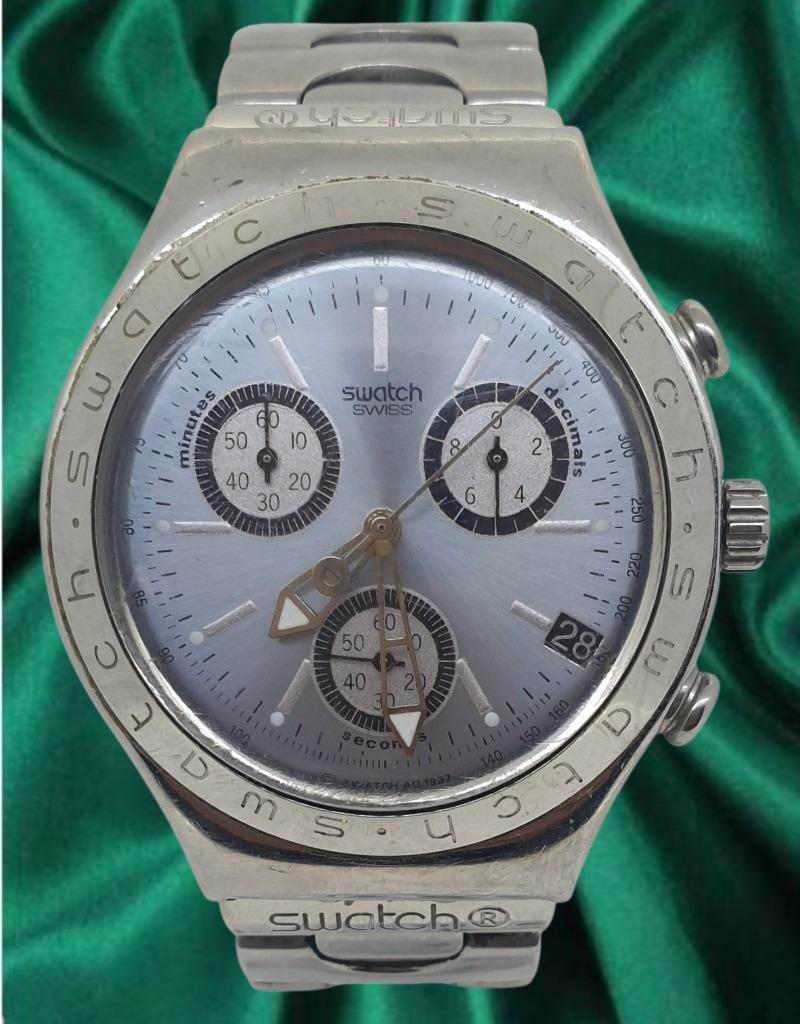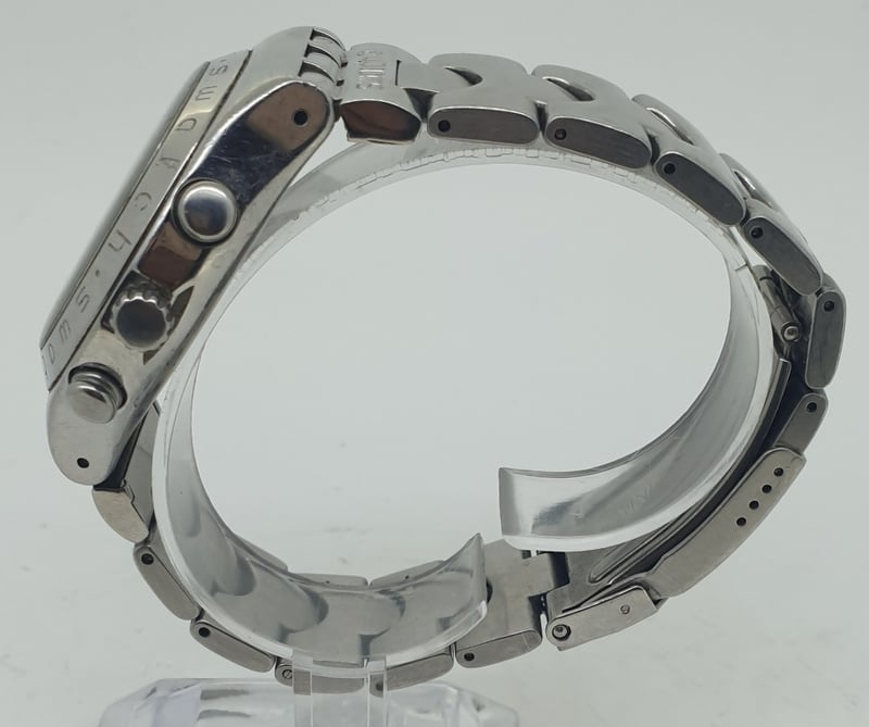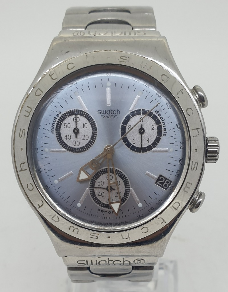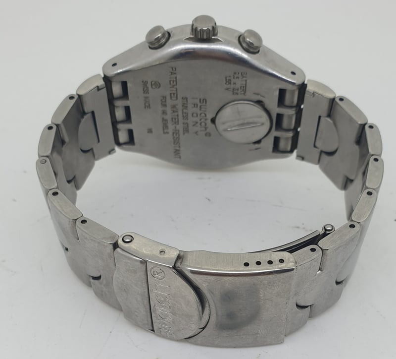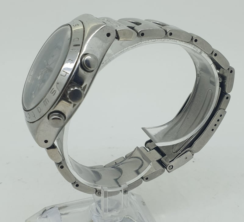 SWATCH IRONY CASE DESCRIPTION: STAINLESS STEEL CASE SIZE: 41MM BRACELET: STAINLESS STEEL MOVEMENT: PATENTED WATER RESISTANT BOX: NOT INCLUDED PAPERS: NOT INCLUDED Condition: Good - Refer To Images 488196+1