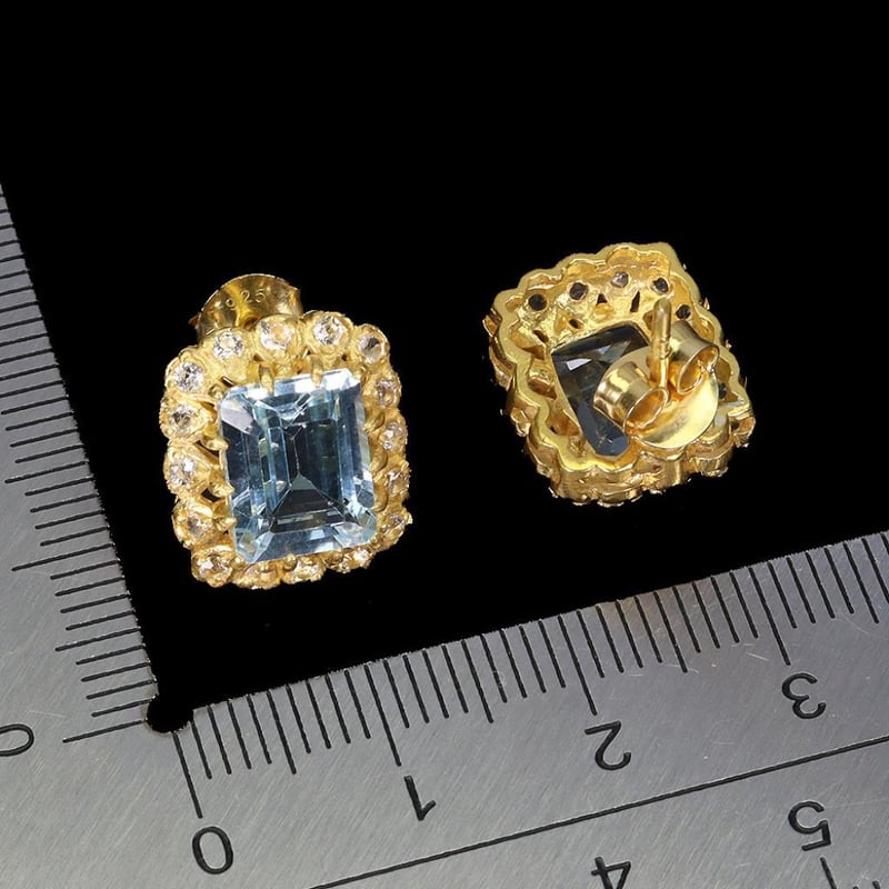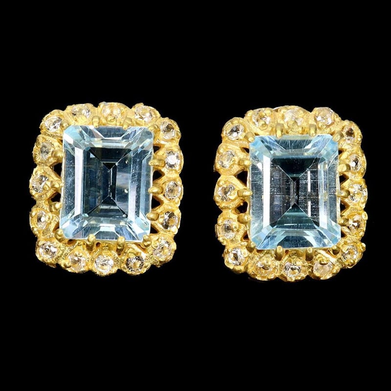 NATURAL SKY BLUE TOPAZ EARRINGS Natural Sky Blue Topaz Earrings. Made In Solid Sterling Silver And Plated In14K Yellow Gold. Features Natural Octagonal Facet Sky Blue Topaz And Natural Sparkling White Topaz. Earrings Measure 14.0 X 12.0 Mm. Condition: Good - Refer Images 0488301+21