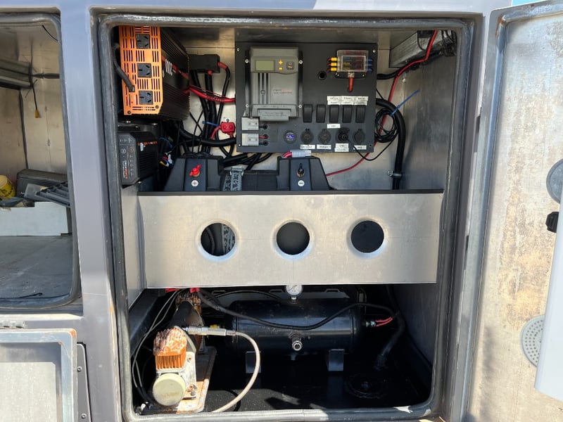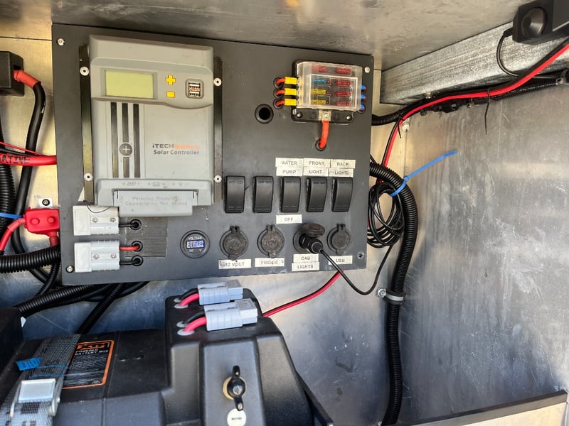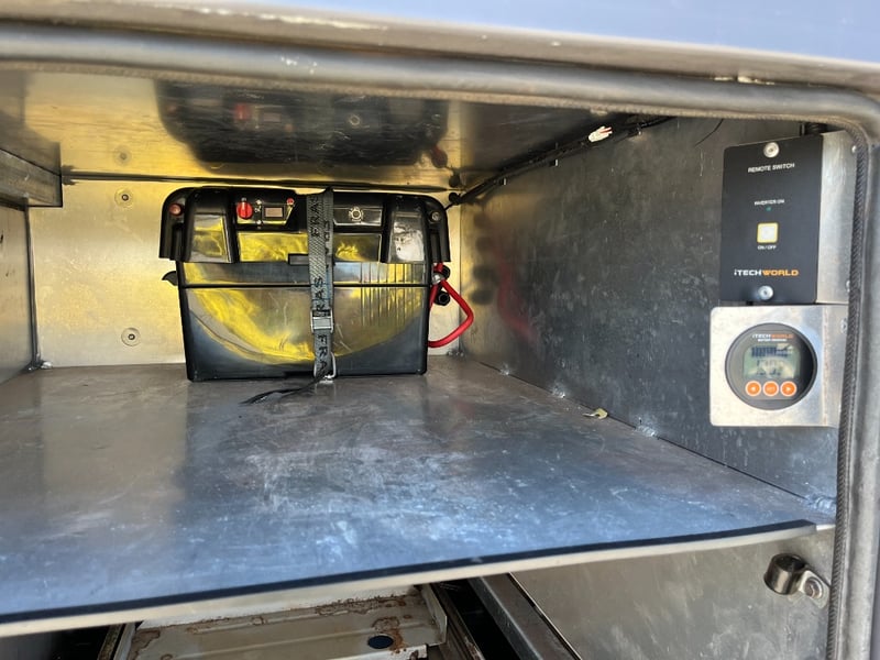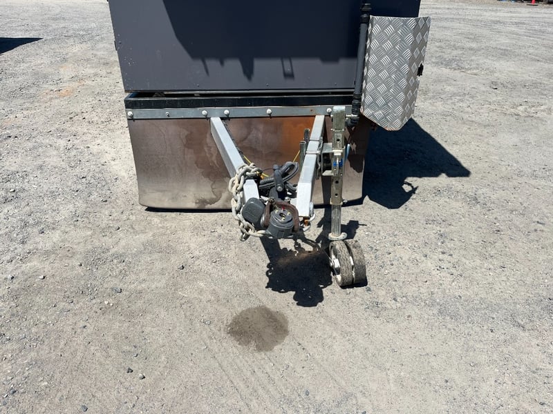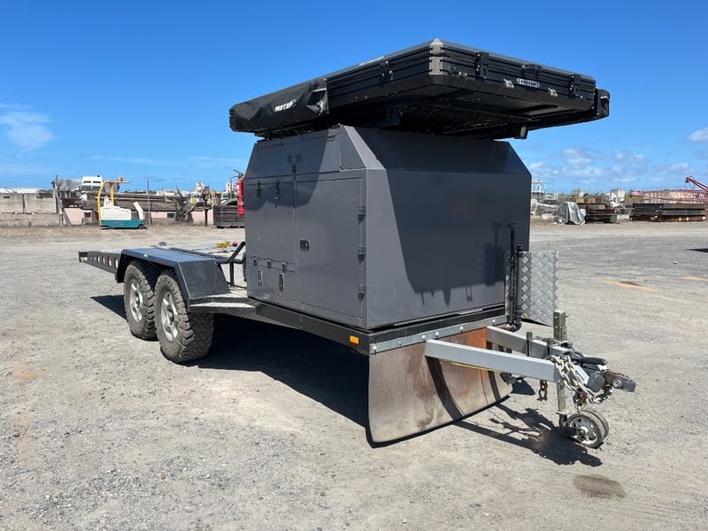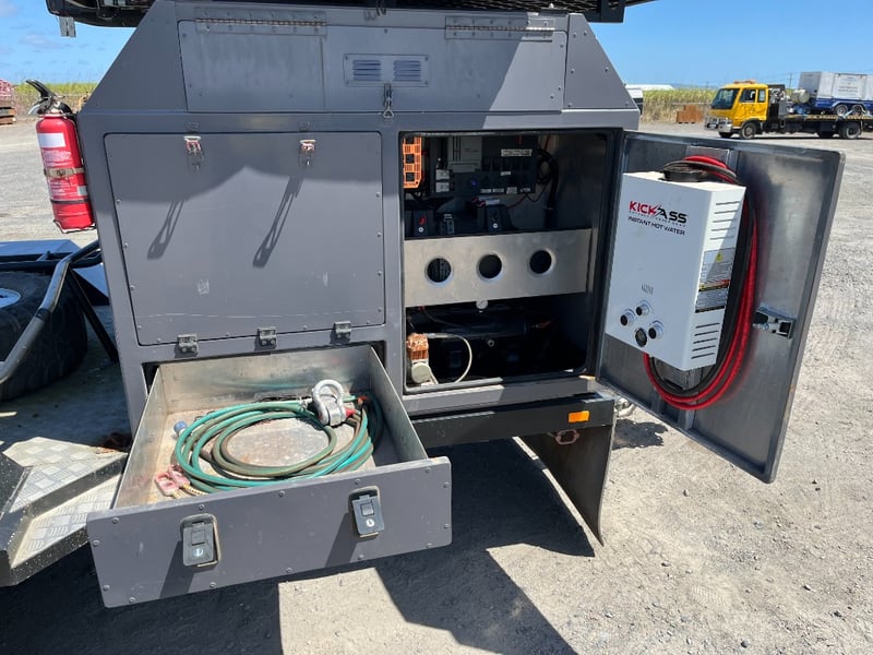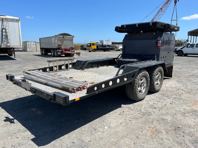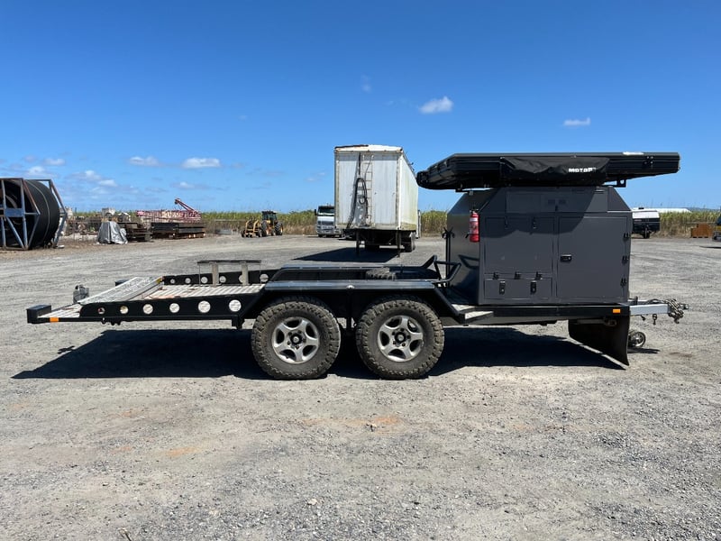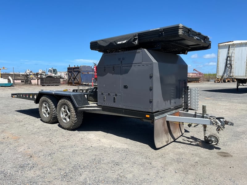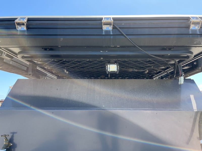 Description: same wheel base as land cruiser 200 series, 80ltr water tank underneath, set up for dual and solar battery ready to go, Hot water system, All enclosed hatches are waterproof and lockable, full 270 degrees awning, Rooftop tent, Loading ramps, Slide out fridge shelf, Lots of lighting and Plenty of storage.