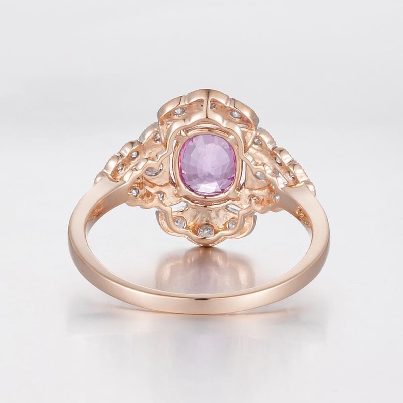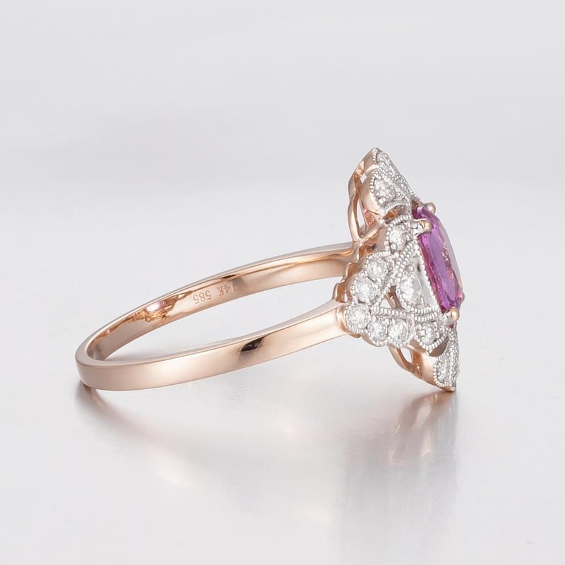 14CT ROSE GOLD PINK CEYLON SAPPHIRE AND DIAMOND ANTIQUE INSPIRED RING. Featuring Centre, One Oval Cut, Deep Vivid Orange-Pink Ceylon Sapphire (1.06Ct, Slight Inclusions), Claw Set, With 22 Round Brilliant Cut Diamonds (0.34Ct Tdw, G-H Colour, Si1-Si2 Clarity) Bead Set In White Gold. Ring Size O. Valuations Provided by an Independent Third-Party Professional Not Directly Associated With Lloyds Auctions at AUD $18200This valuation has been conducted by an independent third-party professional. The valuation amount is an assessment by the issuing valuer and does not reflect the auction value of the item. Any inquiries regarding the valuation should be directed to the issuing valuer (refer to contact details on the certificate), as Lloyds Auctions has no affiliation or influence over the valuation, the valuer, or the stated amount. Condition: Good - Refer Images 0586156+434