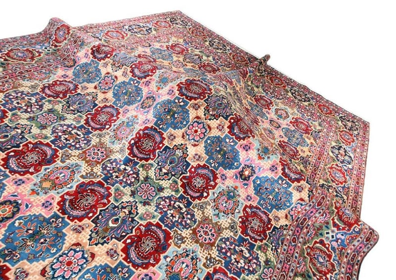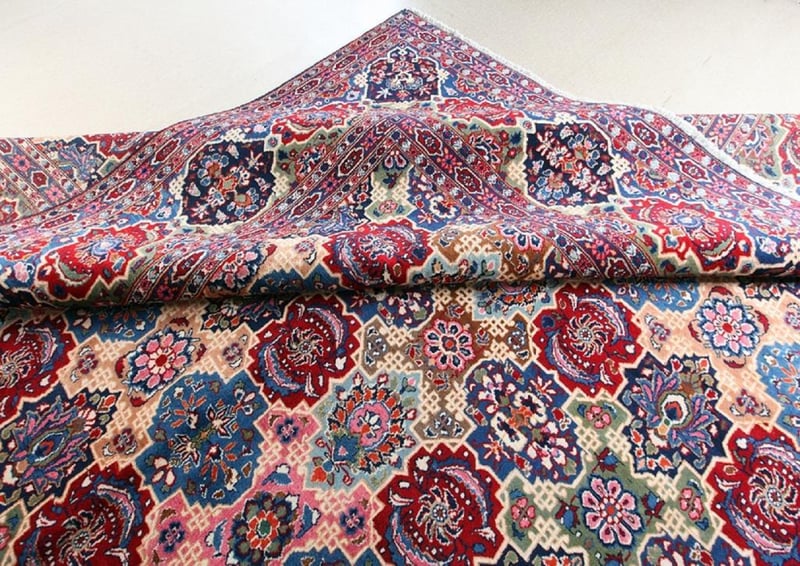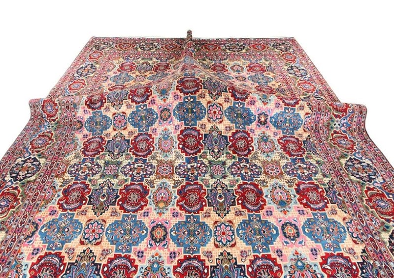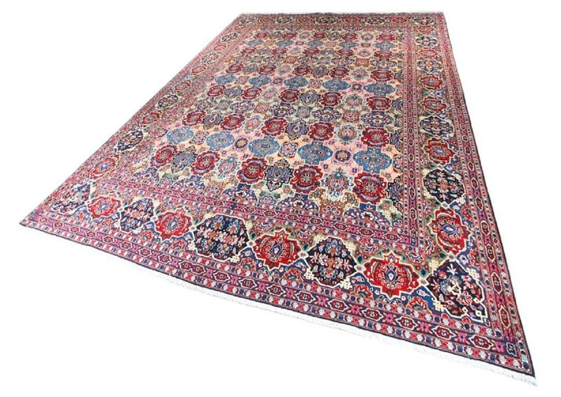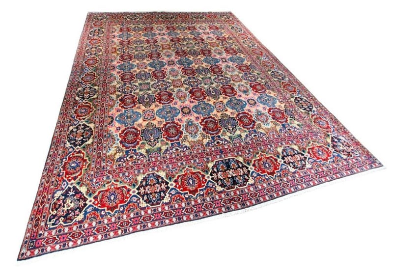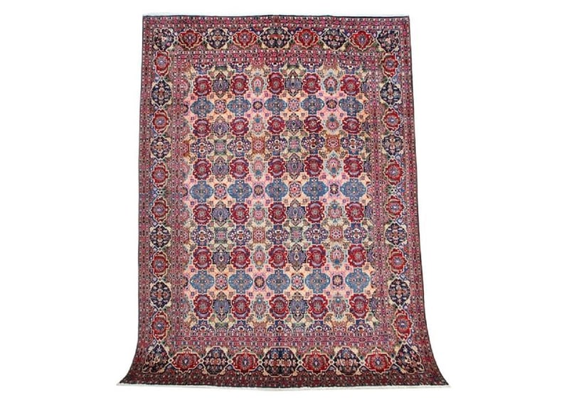 A PERSIAN BIRJAND MOUD RUG. Finely Hand Knotted Persian Birjand Moud. 100% Wool With Silk Highlighted Pile. All Over Multi Medallions Souranded With Panel Flower Border. Size(Cm): 390 X 295 Circa 1990S Size: 390X295 Condition: Good - Refer To Images 488068+26