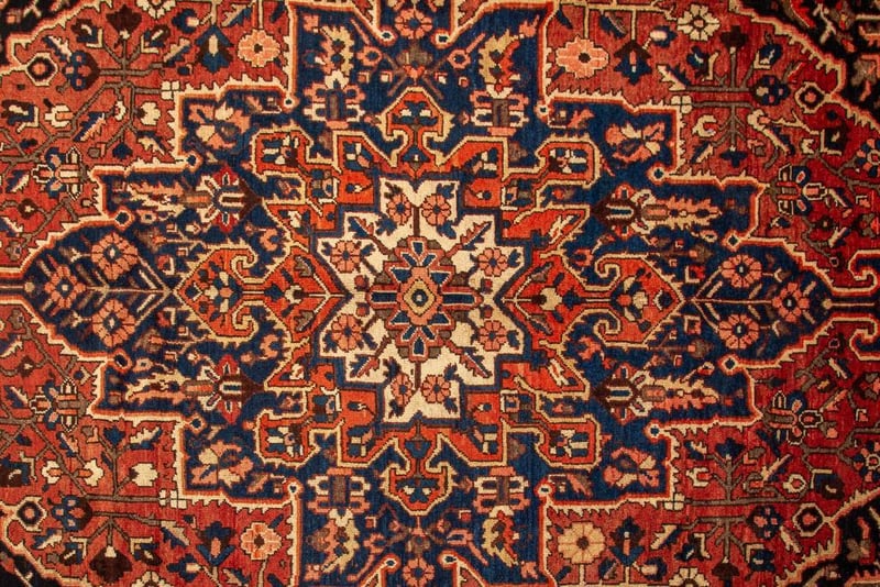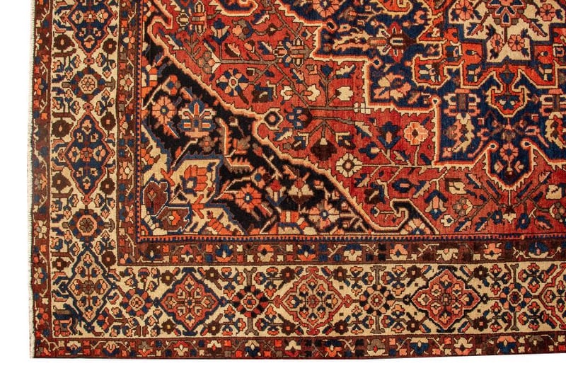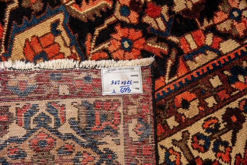 PERSIAN BAKHTIYARI CARPET100% Lambs Wool Polished Pile, Very Solid And Densely Hand Knotted. In A Traditional Design Of A Central Medallion In Soft Tones Of Navy. Sha Abbasi Palmettes In Tones Of Persian Blue With Red Border. Origin: Persia.Sizecm): 378 X 295 Circa 1980S Rrp: $7800Condition: Good - Refer To Images488197+17