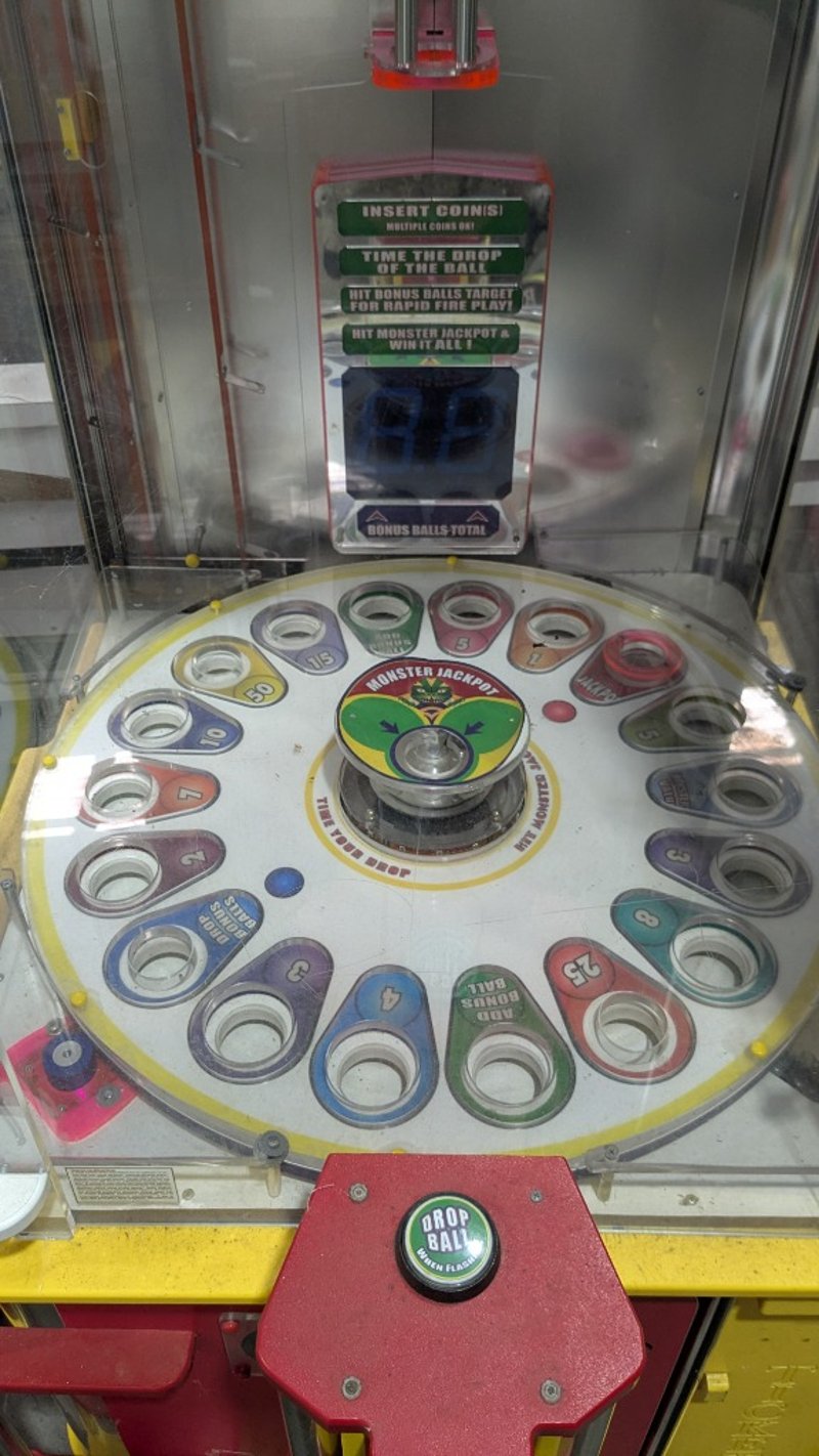 Amusement Machine, Monster Jacketpot Dimensions: 215cm x 180cm x 100cm Note, untested, Advised in working order, No Coin Mechanism, Power cord included