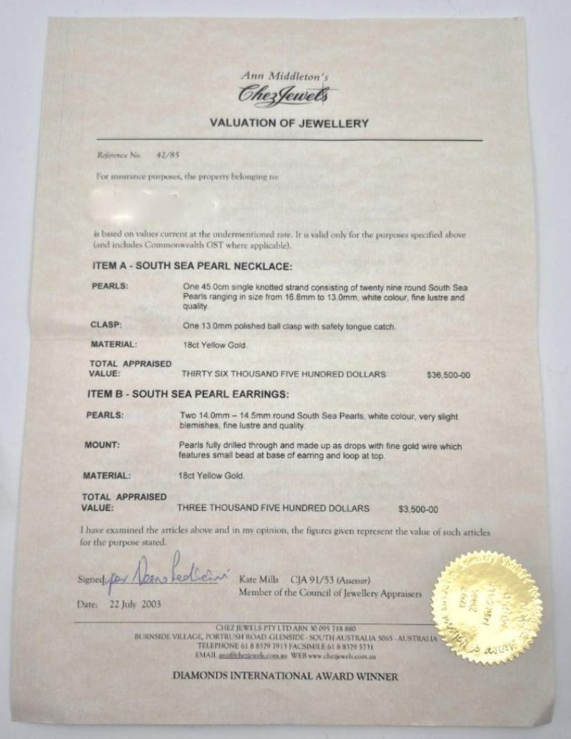 NOTE: VALUATION MENTIONS (ITEM B EARRINGS) THAT ARE NOT INCLUDED IN THIS LISTING. NECKLACE ONLY.