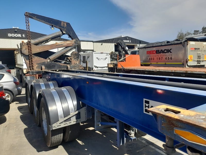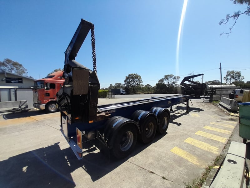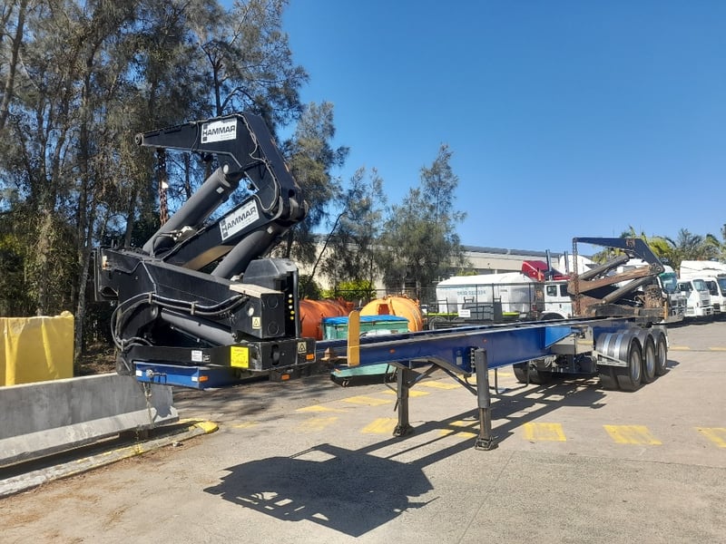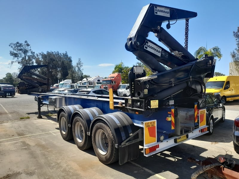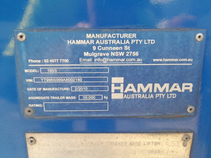 Hammar Semi Trailer Make: Hammar Australia pty ltd Model: triaxle side lifter 195S Year: 2010 VIN: YT995S099A8002180 Tare: 8 ATM: 39,000kg Trailer length: 13.6m Trailer width: 2.6m Suspension: Air bag Configuration: triaxle 12 wheeler Description: working condition triaxle side lifting Hammar container hauler, Lifting capacity of 36 tonnes, 2 extra support legs, on non lifting side for extra support and stability, sliding cranes for multiple container sizes Please be advised that, in accordance with Schedule 11 of the Biosecurity Regulation 2016, all machinery, equipment, and vehicles must be thoroughly cleaned of soil, organic matter, and other potential contaminants prior to leaving this site. This is a critical measure to prevent the potential spread of fire ants and to ensure compliance with biosecurity obligations. We appreciate your cooperation in helping to protect our environment and agricultural industries #CTM