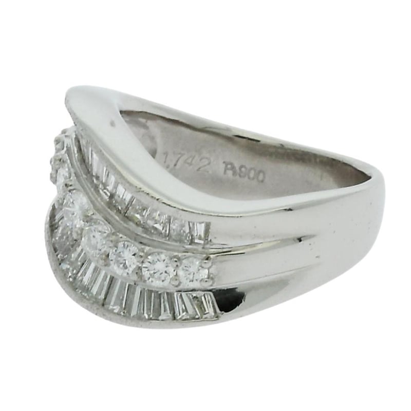 1.74 Carat Diamond Platinum Dress Ring, Wide, Low Half Round, Tapered Curved Shank Shared Claws, Polished Finish. Ring Size K1/2. The Item Contains: