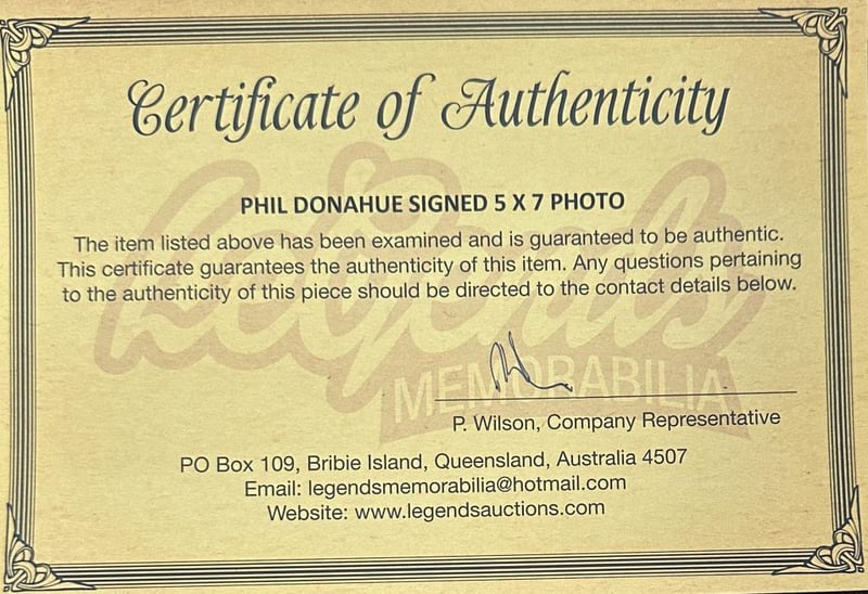 PHIL DONAHUE SIGNED PHOTO Phil Donahue Personally Signed 5 X 7 Photo. Phillip Donahue Was An American Media Personality, Writer, Film Producer, And The Creator And Host Of The Phil Donahue Show. The Item Is Accompanied By A Certificate Of Authenticity. Condition: Good - Refer To Images 584939+56