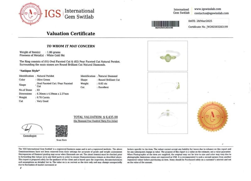 This valuation has been conducted by an independent third-party professional. The valuation amount is an assessment by the issuing valuer and does not reflect the auction value of the item.