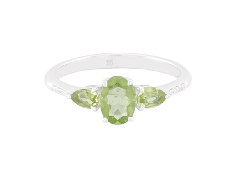 9CT WHITE GOLD PERIDOT AND DIAMOND RING