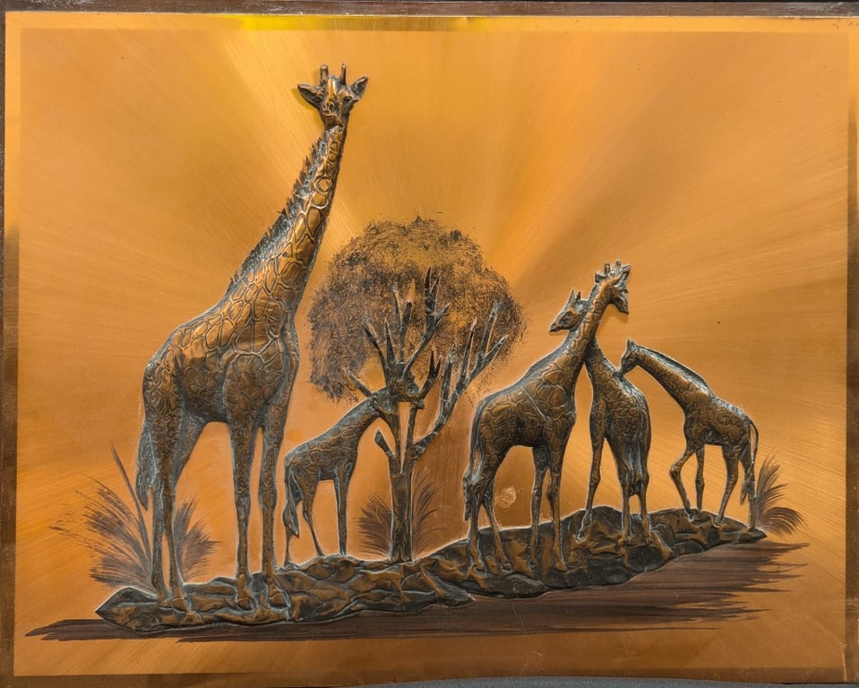 DENNIS THOMSON Original Copper On Wood Title: 'Giraffe' Image Size: 56cm x 41cm Frame Size: 58cm x 43cm Original Maker Label Verso Condition: Good - Refer To Images 584929+4