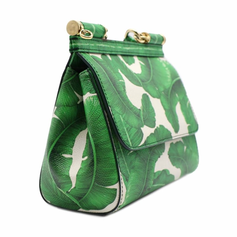 DOLCE & GABBANA BANANA LEAF PRINT SMALL MISS SICILY SATCHELItem Size: Height: 17cm, Width: 23cm, Depth: 8cmExterior MaterialLeather With Gold-Tone Hardware, Single Top Handle, Magnetic Flap Closure And A Shoulder Strap.Interior MaterialTextile Lining With A Main Compartment, A Patch Pocket And A Slit Pocket.Additional Condition Report- Minor Sign Of Wear And Tears On Exterior- Minor Wear In Interior- Sign Of Wear And Scratches On HardwareComes With- Original Dustbag- A Detachable Strap- Certificate Of AuthenticityCondition: Good - Refer To ImagesCROSSDOCK162909+92
