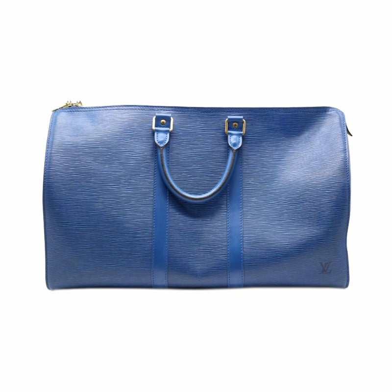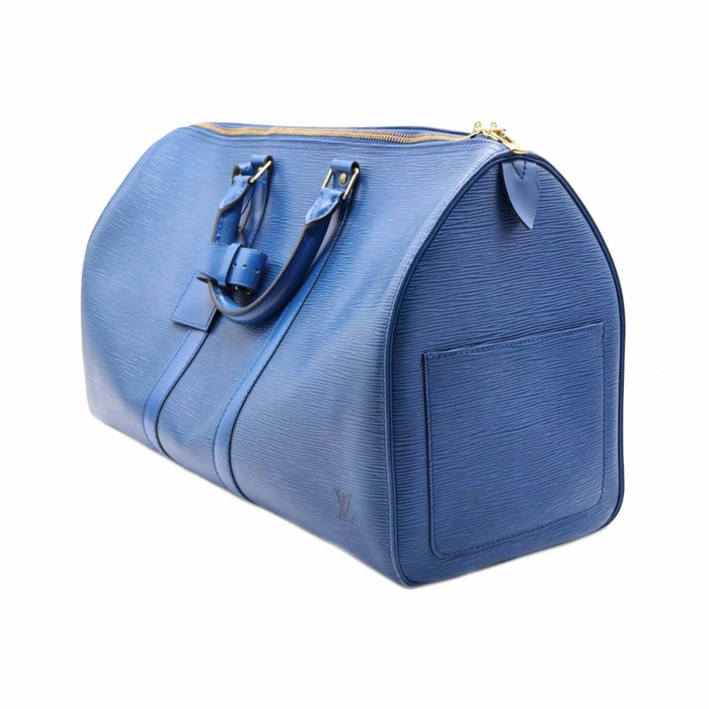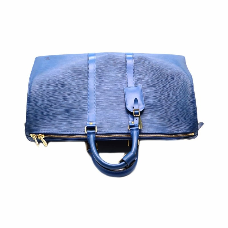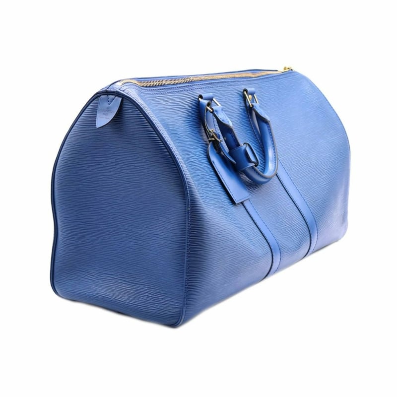 LOUIS VUITTON BLUE EPI LEATHER KEEPALL 45 BAGExterior MaterialEpi Leather With Gold-Tone Hardware, A Side Pocket, Top Zip Closure And Dual Rolled Top Handles.Interior MaterialTextile Lining With A Main Compartment.Additional Condition Report- Moderate Sign Of Wear And Tear On Exterior- Visible Scuffs And Creases On Exterior Corners And Handles- Visible Stain And Wear In Interior- Sign Of Wear And Scratches On HardwareComes With- Certificate Of AuthenticityCROSSDOCK162909+74