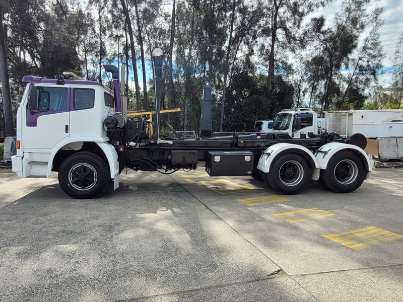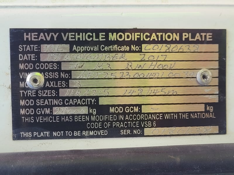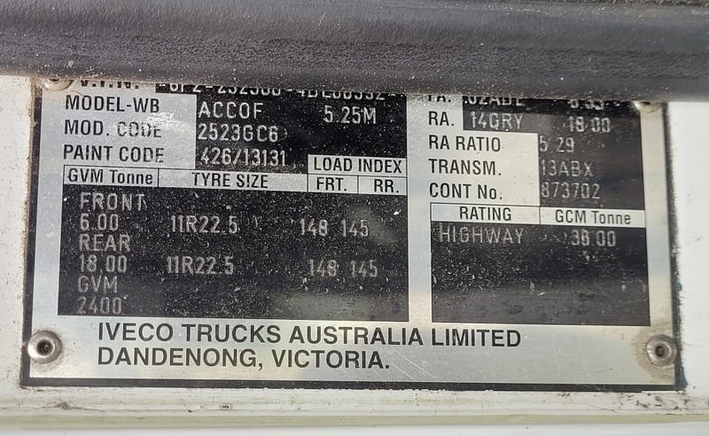 Description/extras: Air Conditioning, Reverse camera. Oricom UHF, toggle switch on dash for turbo timer, switch on dash for indicators, LED work lights, under tray tool box, beacon light, battery isolator, retractable tarp, GVM: 24,000 kg,. Marks, scratches, rust present, rip in drivers seat,.