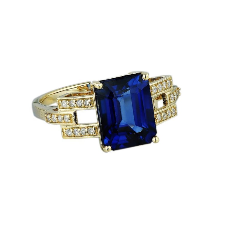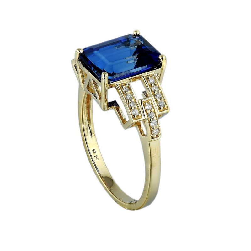 9CT YELLOW GOLD NATURAL DIAMOND & CREATED SAPPHIRE RING THE ITEM CONTAIN 9Ct Yellow Gold Natural Diamond & Created Sapphire Ring The Item Contains: 1Created Sapphire = 4.20 Carat14 Round Brilliant Diamonds = 0.12 CaratRing Weight: 3.00 Grams Ring Finger Size N (7) Condition : Excellent Condition: Good - Refer Images 0488157+49
