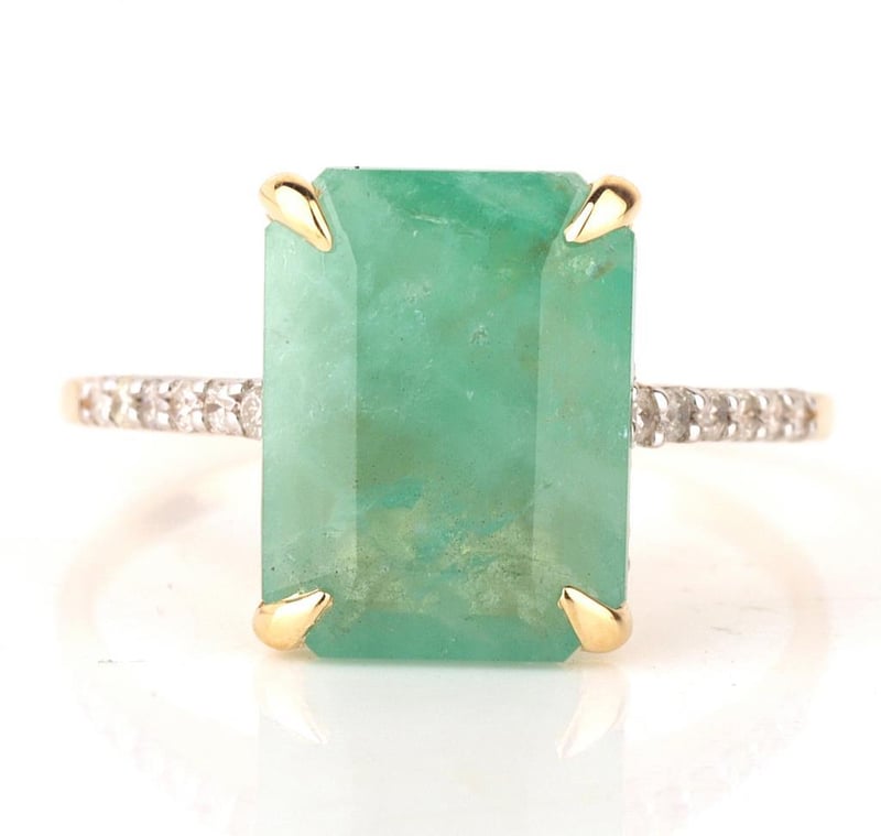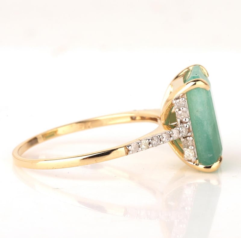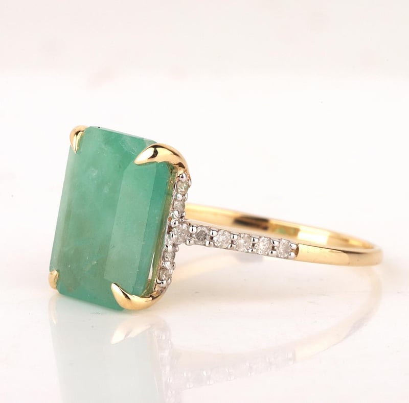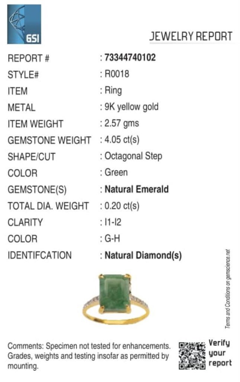 9CT YELLOW GOLD NATURAL EMERALD & DIAMOND RING