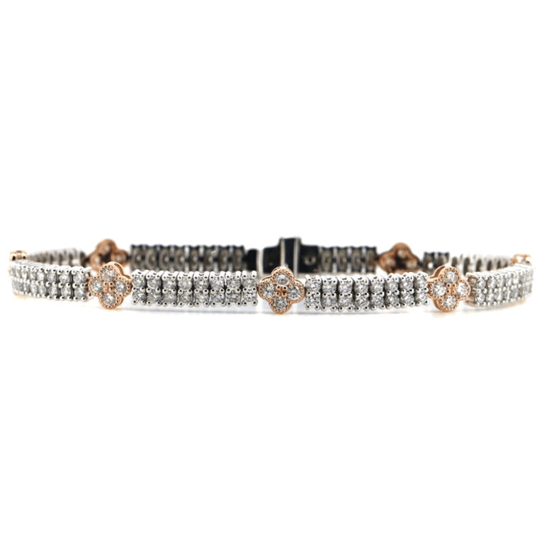 The Design Features, 28 Round Brilliant Cut, Fancy Blush Pink Diamonds (0.97Ct Tdw, Si1-Si2 Clarity), Bezel Set. Encompassing The Rest Of The Bracelet Are, 130 Round Brilliant Cut, Diamonds (2.79Ct Tdw, G-H Colour, Si1-Si2 Clarity), Claw Set In 2 Rows. The Bracelet Has A Box Lock Closure With 2 Figure Eight Safety Clips And Is 17.5Cm.