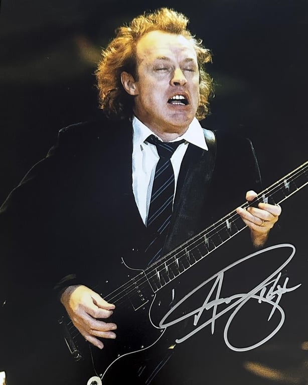 ANGUS YOUNG SIGNED ACDC PHOTO Angus Young Personally Signed 8 X 10 Photo. Angus Young Is An Australian Musician, Best Known As The Co-Founder, Lead Guitarist, Songwriter, And The Only Continuous Member Of The Hard Rock Band Ac/Dc. The Item Is Accompanied By A Certificate Of Authenticity. Condition: Good - Refer To Images 584939+31