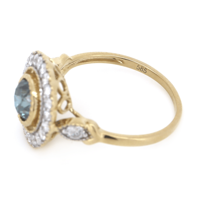 14K YELLOW GOLD, FANCY BLUE DIAMOND, VINTAGE INSPIRED RING. The Centre Features, One Round Brilliant Cut, Fancy Deep Blue, Diamond (1.04Ct, Si2 Clarity), Bezel Set. Surrounding The Centre In A Halo And Decorating The Band Are, 22 Round Brilliant Cut, Diamonds (0.50Ct Tdw, G-H Colour, Si2-P1 Clarity), Bead Set With Millegrain Detail. Ring Size M 1/2. Valuations Provided by an Independent Third-Party Professional Not Directly Associated With Lloyds Auctions at AUD $$24,000.00This valuation has been conducted by an independent third-party professional. The valuation amount is an assessment by the issuing valuer and does not reflect the auction value of the item. Any inquiries regarding the valuation should be directed to the issuing valuer (refer to contact details on the certificate), as Lloyds Auctions has no affiliation or influence over the valuation, the valuer, or the stated amount. Condition: Good - Refer Images 0645848+3244