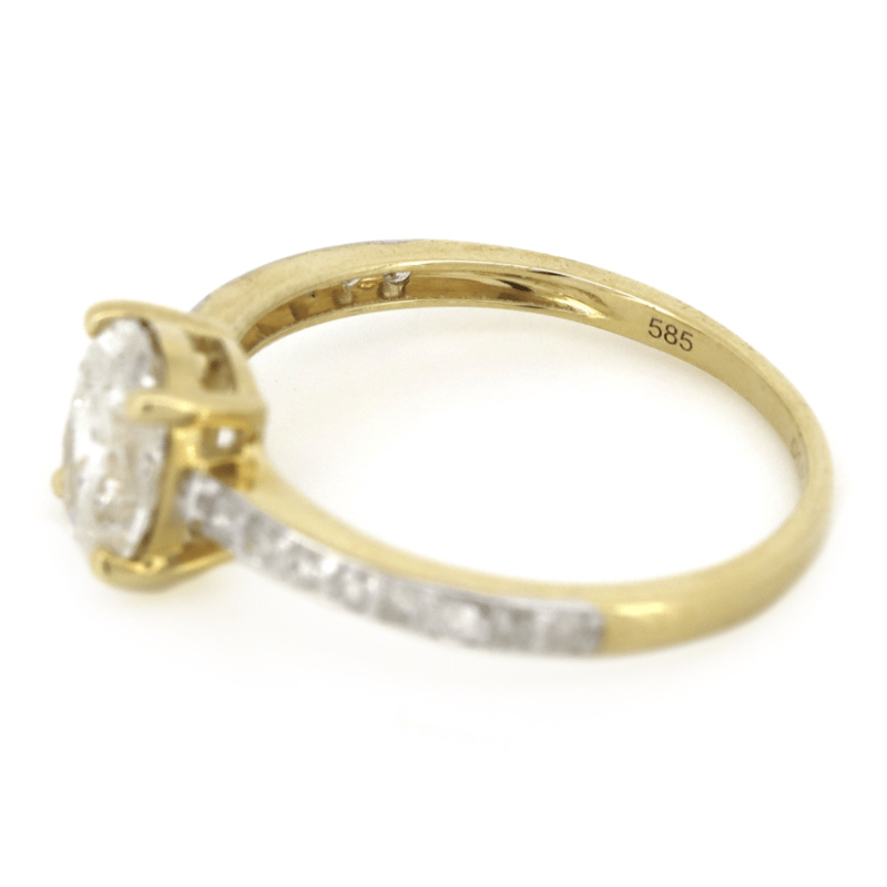 14K YELLOW GOLD AND DIAMOND, CLASSIC RING. The Centre Features, One Oval Brilliant Cut, Diamond (1.01Ct, I-J Colour, P1-P2 Clarity), Claw Set. Decorating The Band Are, 16 Round Brilliant Cut, Diamonds (0.17Ct Tdw, J-K Colour, Si2-P2 Clarity), Punch Set. Ring Size K 1/2. Valuations Provided by an Independent Third-Party Professional Not Directly Associated With Lloyds Auctions at AUD $$27,850.00This valuation has been conducted by an independent third-party professional. The valuation amount is an assessment by the issuing valuer and does not reflect the auction value of the item. Any inquiries regarding the valuation should be directed to the issuing valuer (refer to contact details on the certificate), as Lloyds Auctions has no affiliation or influence over the valuation, the valuer, or the stated amount. Condition: Good - Refer Images 0645848+3254