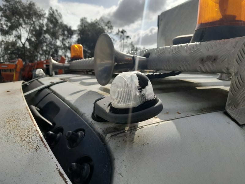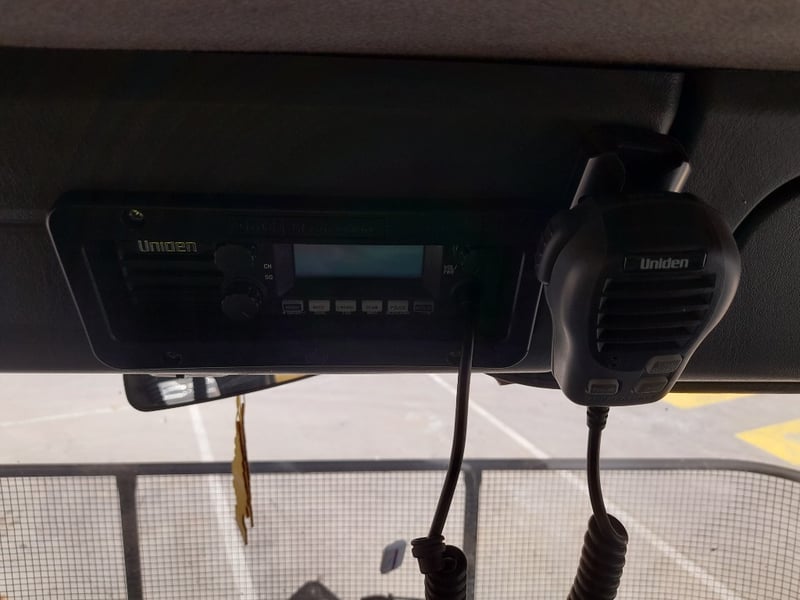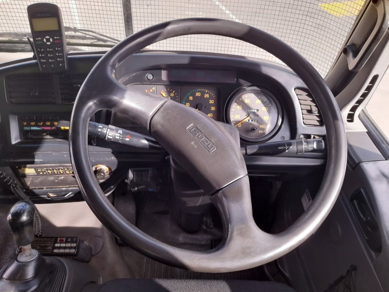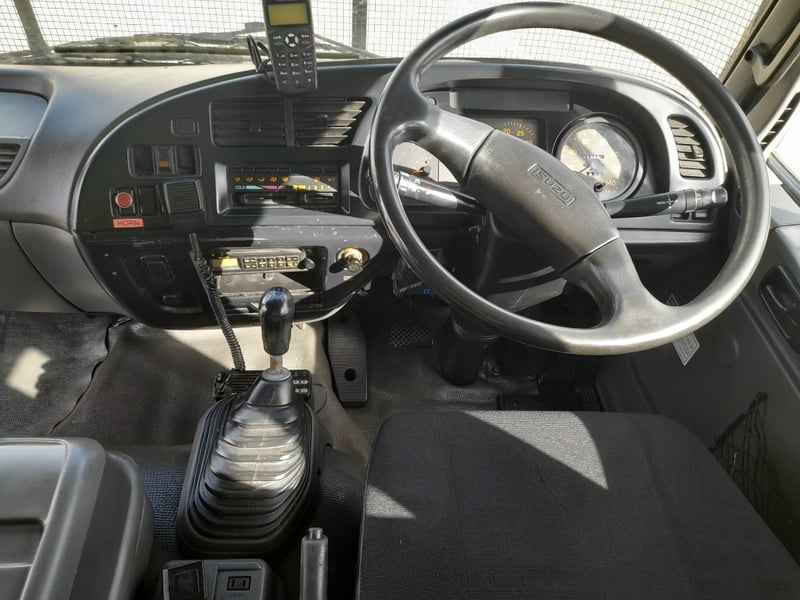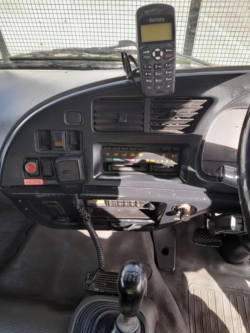 The interior is in good condition, small sleeper mattress, UHF radio, car phone, remote control for hoist,