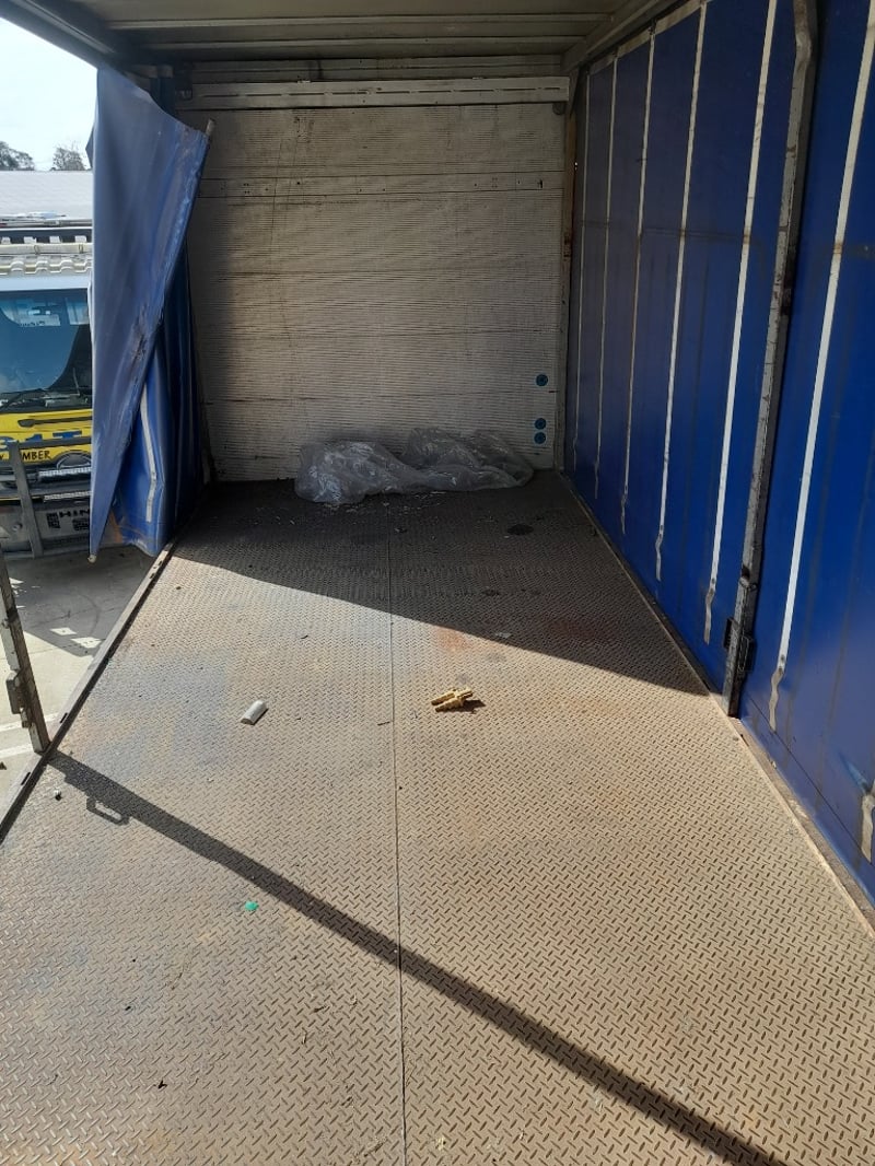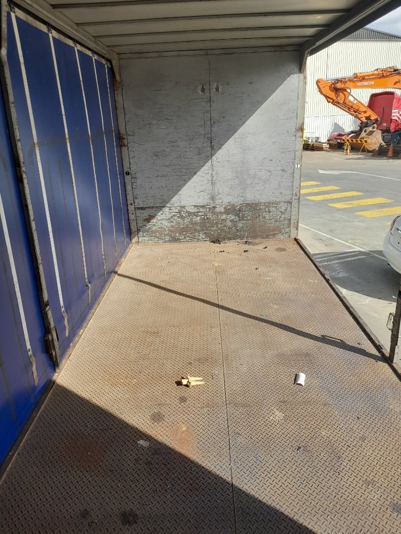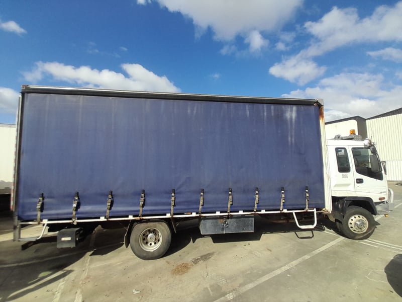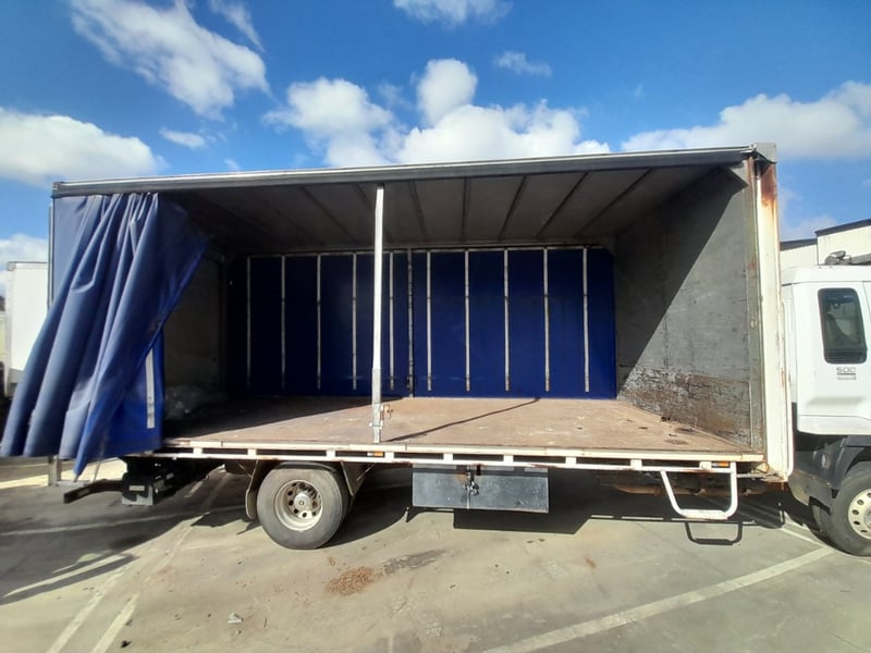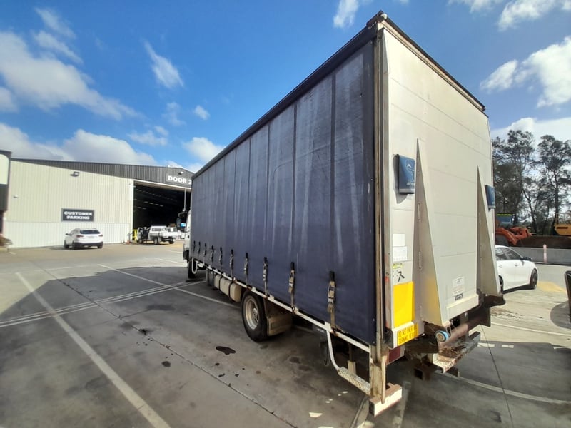 Description/extras: Non running curtain side truck, with rear tail gate hoist,