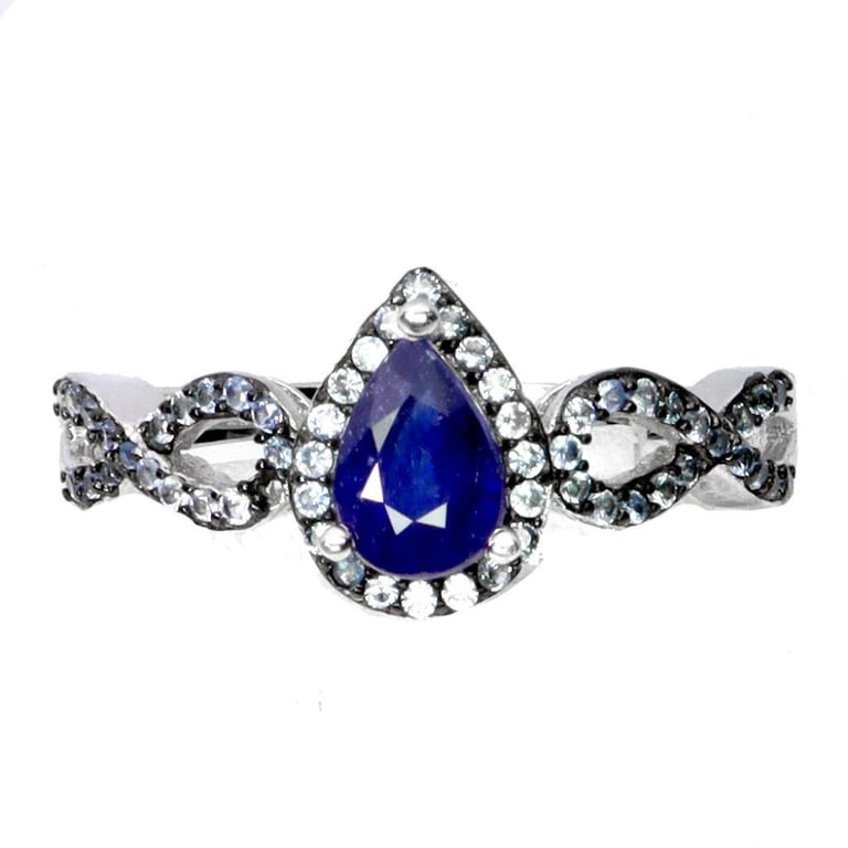 Natural Sapphire Ring. Made In Solid Sterling Silver And Plated In14K White Gold. Features Natural Blue Sapphires. Ring Size 7