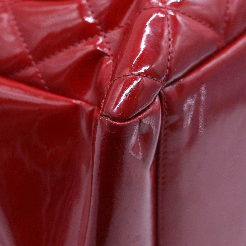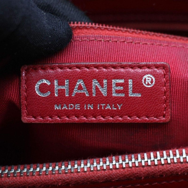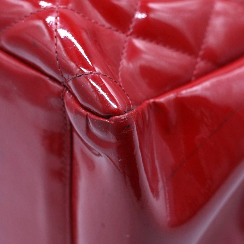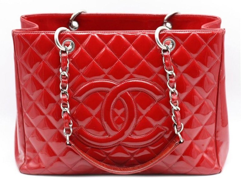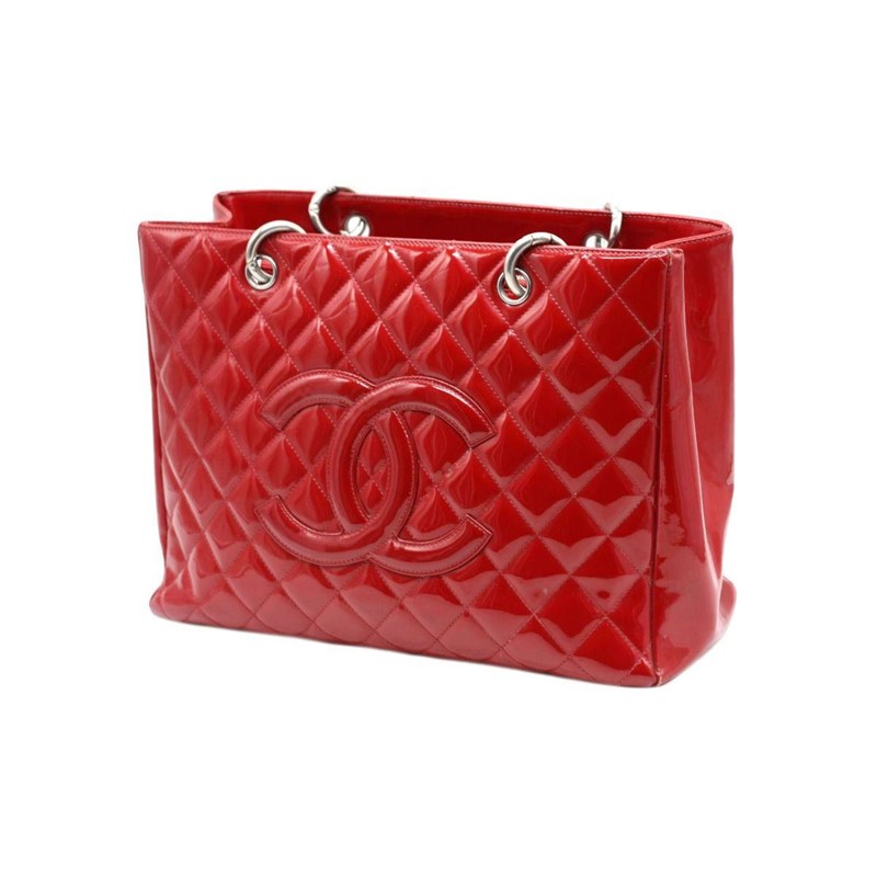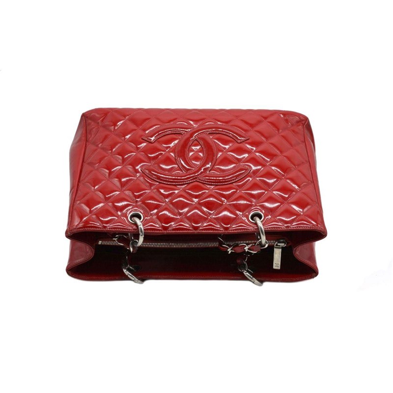 CHANEL RED PATENT LEATHER GST TOTE Length: 36cm Height: 24.5cm Depth: 15cm Handle Drop: 24cm Exterior Material Patent leather with silver-tone hardware, dual top handles and a rear patch pocket. Interior Material Textile lining with two main open compartments, a middle zipped compartment, a zipped pocket and a patch pocket. Additional Condition Report - Moderate sign of wear, tears and stains on exterior - Moderate scuffs on exterior corners - Moderate wear in interior - Moderate scratches on hardware Comes With - Authenticity Card - Certificate of Authenticity CROSSED DOCKED 155429+80