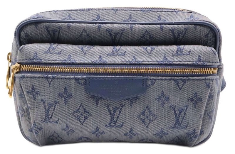 LOUIS VUITTON DENIM MONOGRAM BUMBAG Item Size: Height: 15cm, Width: 22cm, Depth: 5cm Exterior Material Monogram Denim And Leather Trim With Gold-Tone Hardware, A Front Zip Pocket, Zip Around Closure And A Waist Strap. Interior Material Textile Lining With A Main Compartment. Additional Condition Report - Moderate Sign Of Wear, Tears And Marks On Exterior - Minor Wear In Interior - Sign Of Wear And Scratches On Hardware Waist Strap Drop: 42Cm Adjustable Comes With - Certificate Of Authenticity CROSS DOCK 155511+20