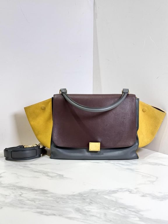 CELINE TRAPEZE MEDIUM BURGANDY/GREY/YELLOW FPA01052 Condition: Good - Refer Images 0488283+24
