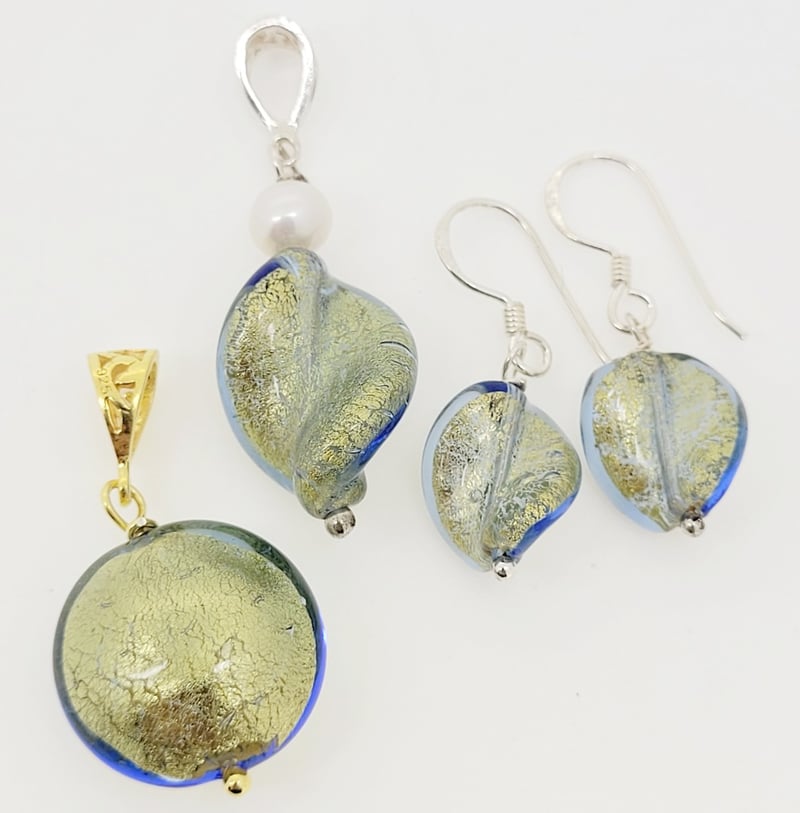 ASSORTED SILVER MURANO LENTIL JEWELLERYIncludes -2X Pendants 1X EarringsCondition: Good - Refer To Images488252+58
