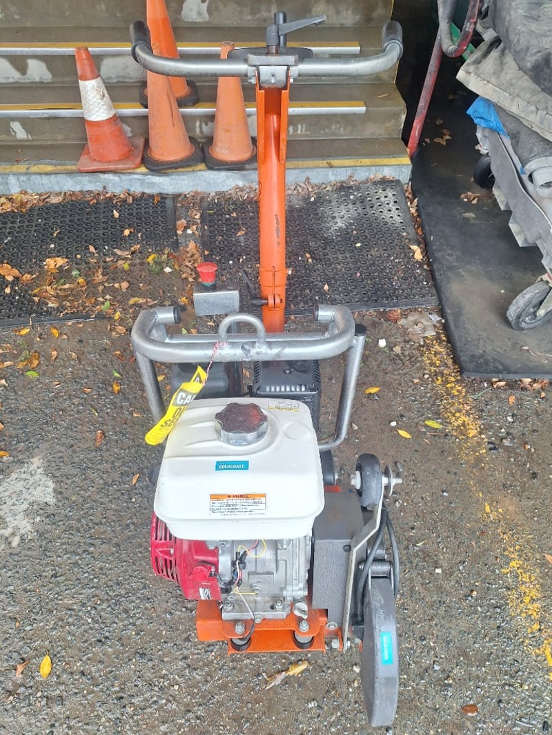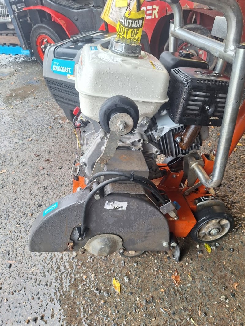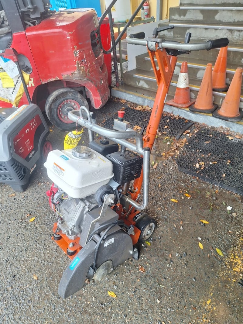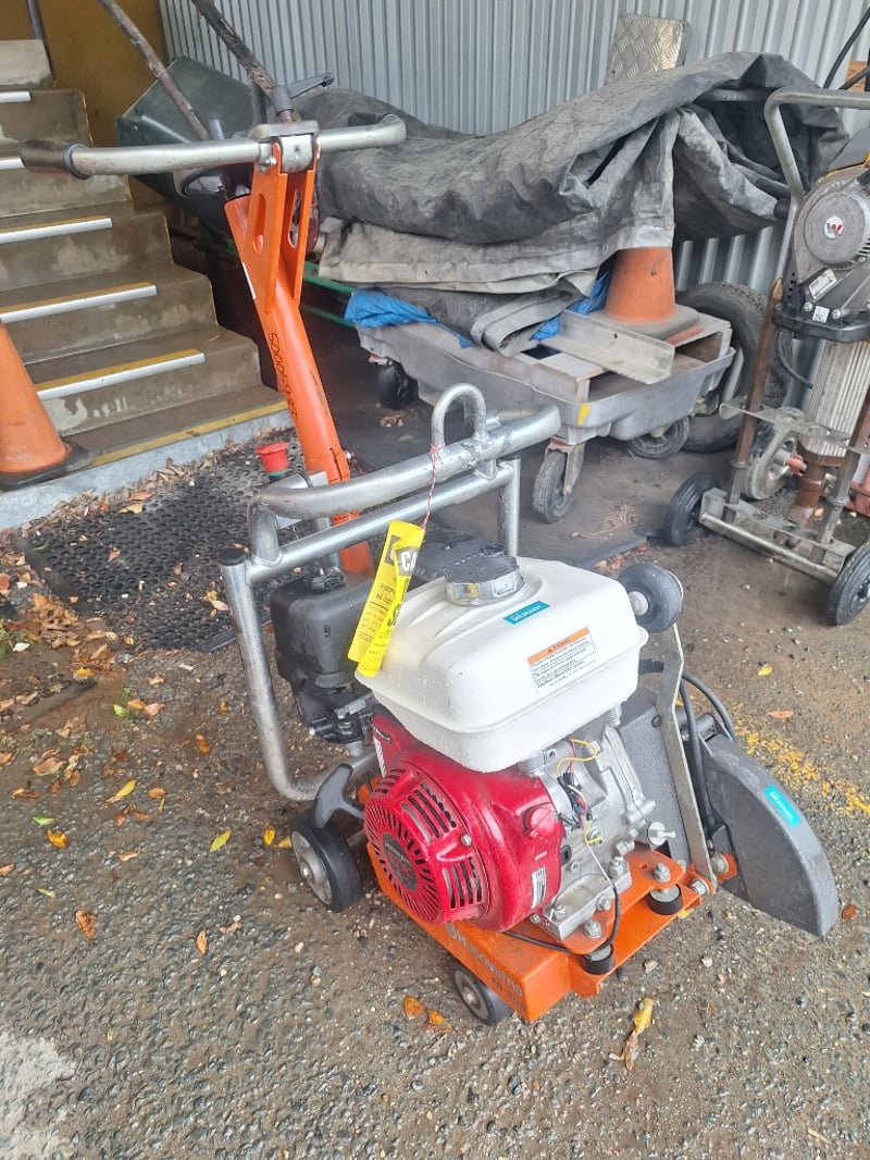 Description: Push Floor Saw Powered By A Honda GX270 Pullstart Motor, 6.3kW