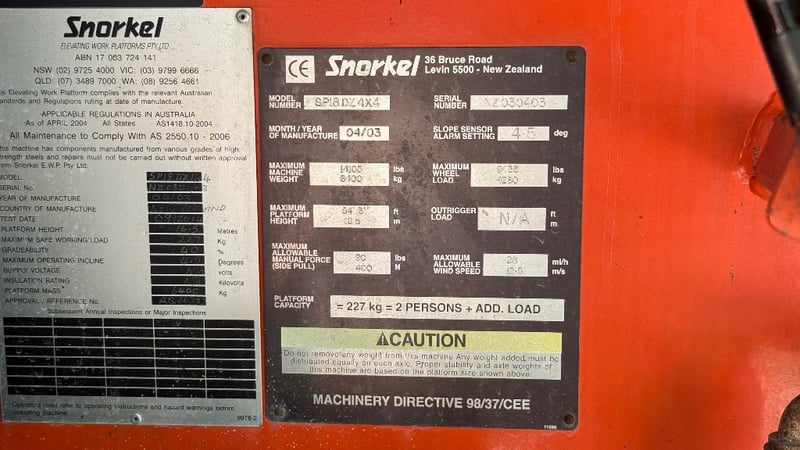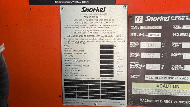 UNRESERVED 2003 18M Boom Lift Snorkel SP18