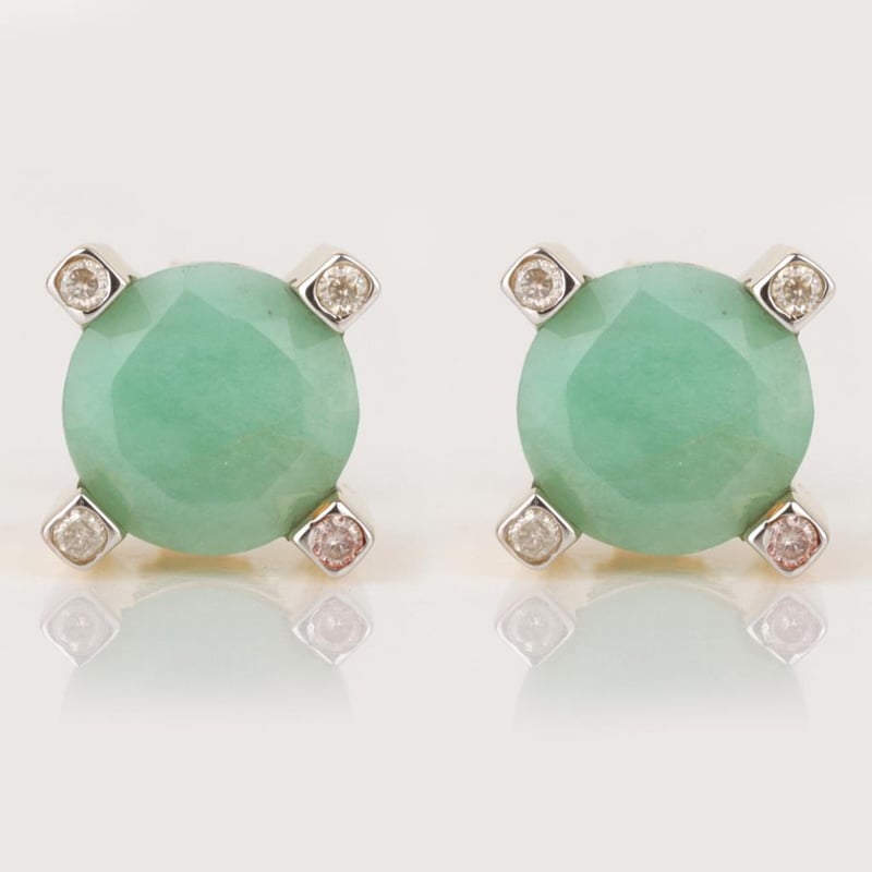 The Earrings Consists Of (2) Round Brilliant Natural Emerald. Surrounding The Main Stones Are Round Brilliant Cut Natural Diamonds.