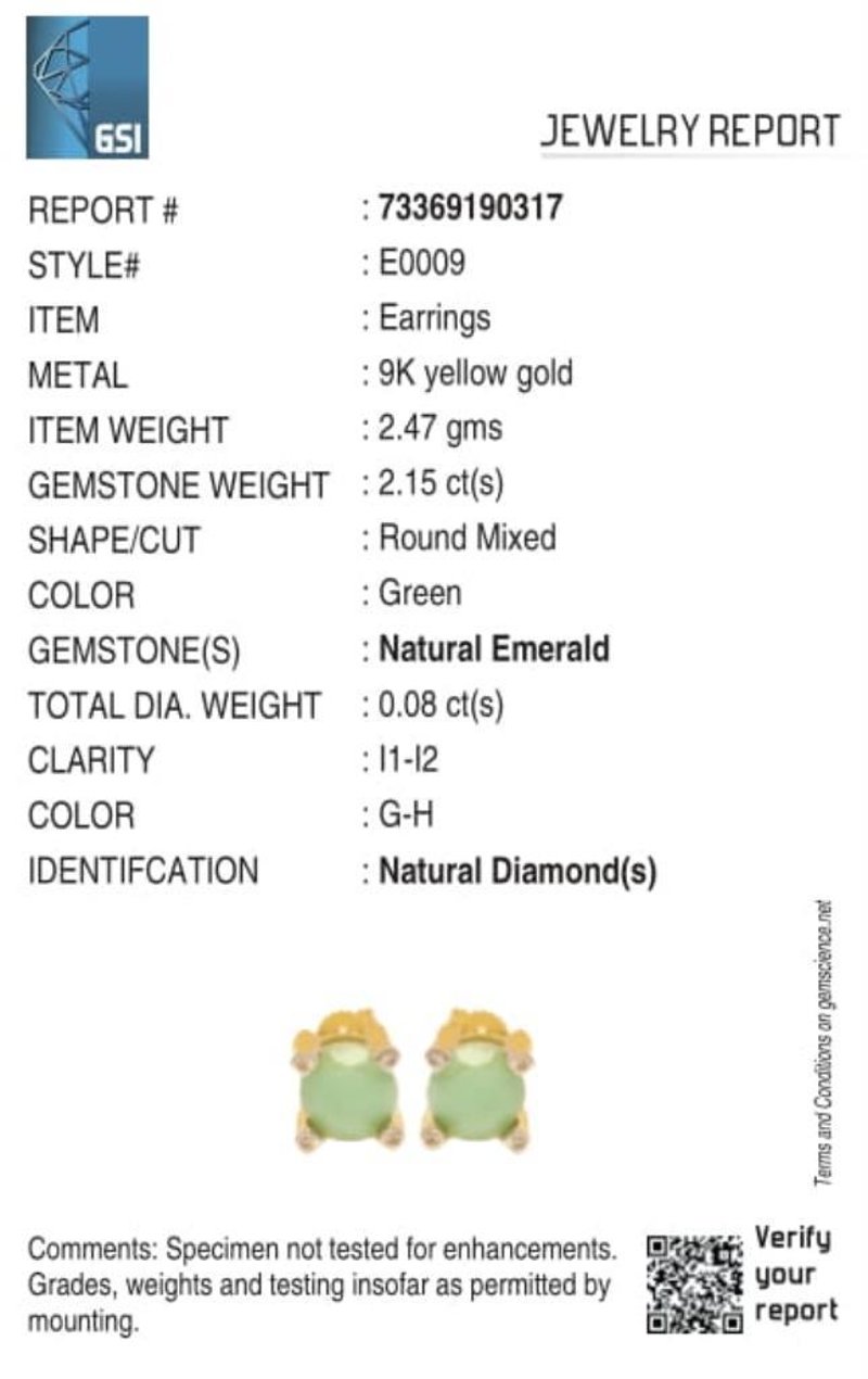 9CT YELLOW GOLD NATURAL EMERALD & DIAMOND EARRINGS