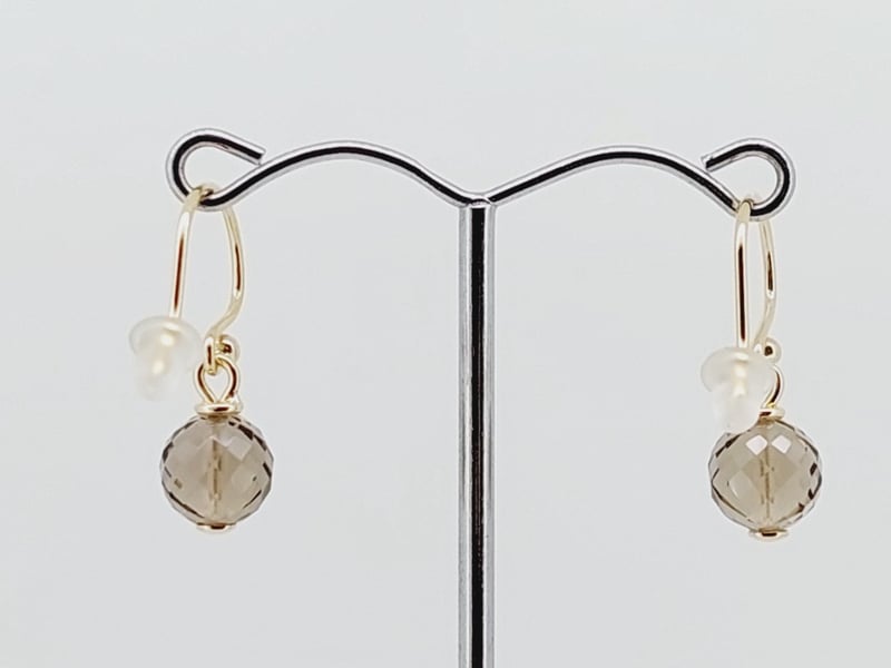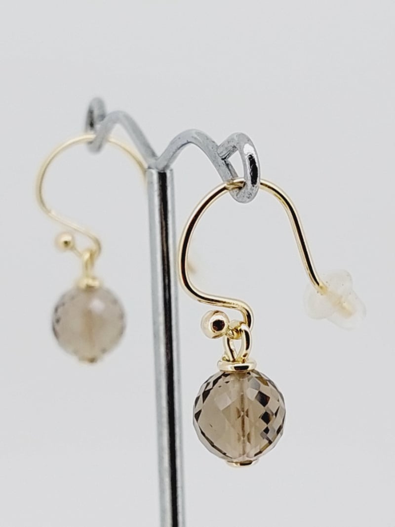 9K WHITE GOLD SMOKEY QUARTZ DROP EARRINGS