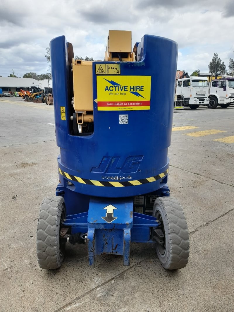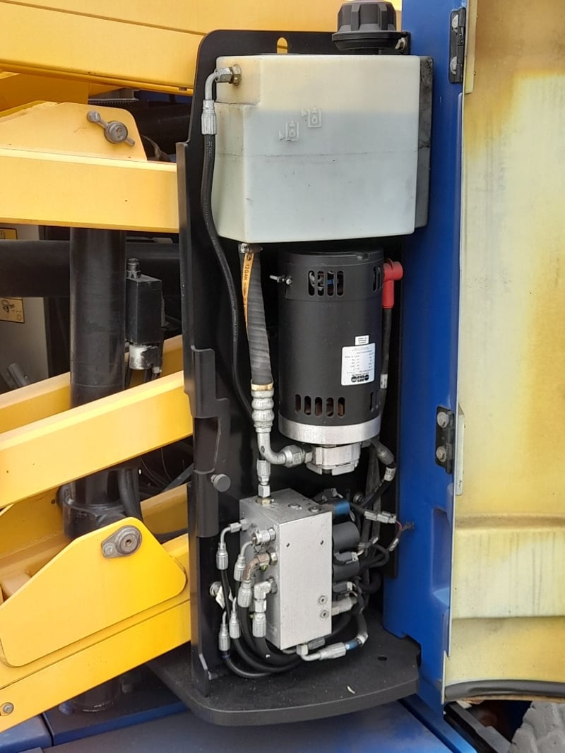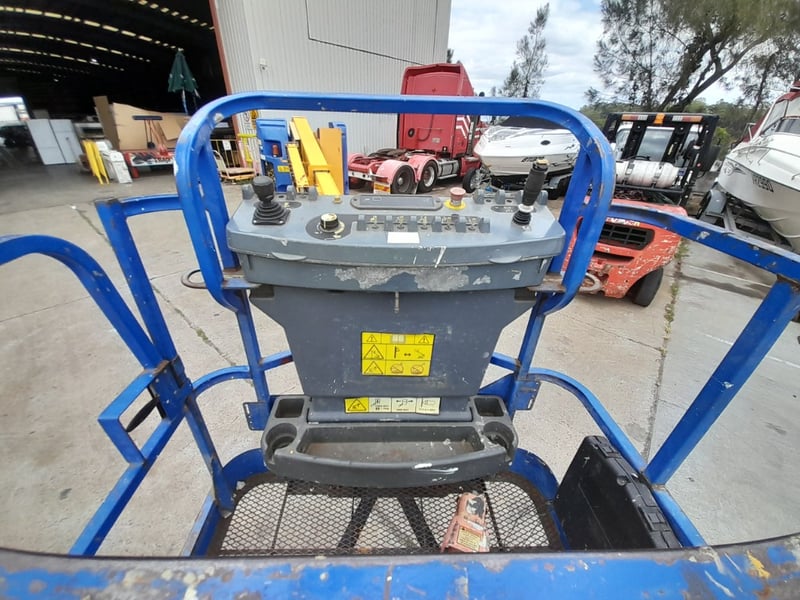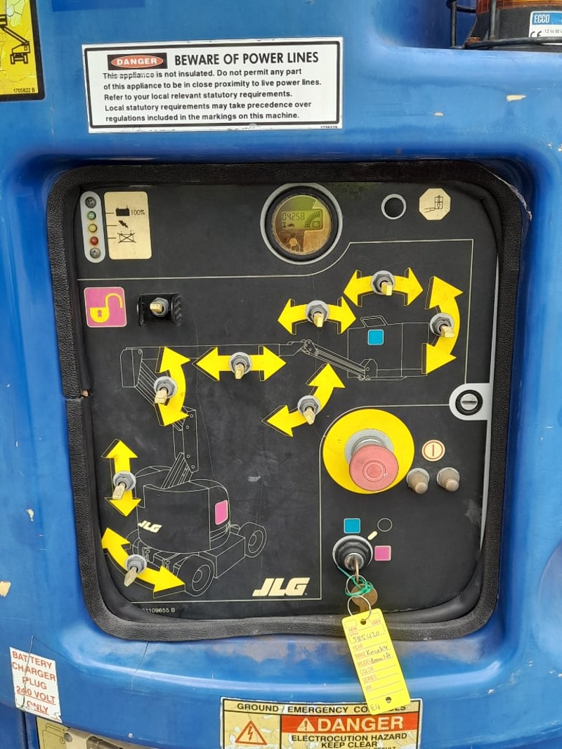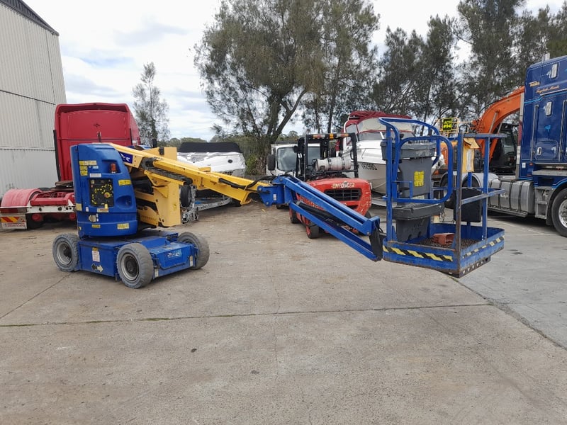 Description: Blue Knuckle boom lift, electric drive, recently replace new batteries, sluce motor drive requires attention, surface rust in place of missing paint in areas
